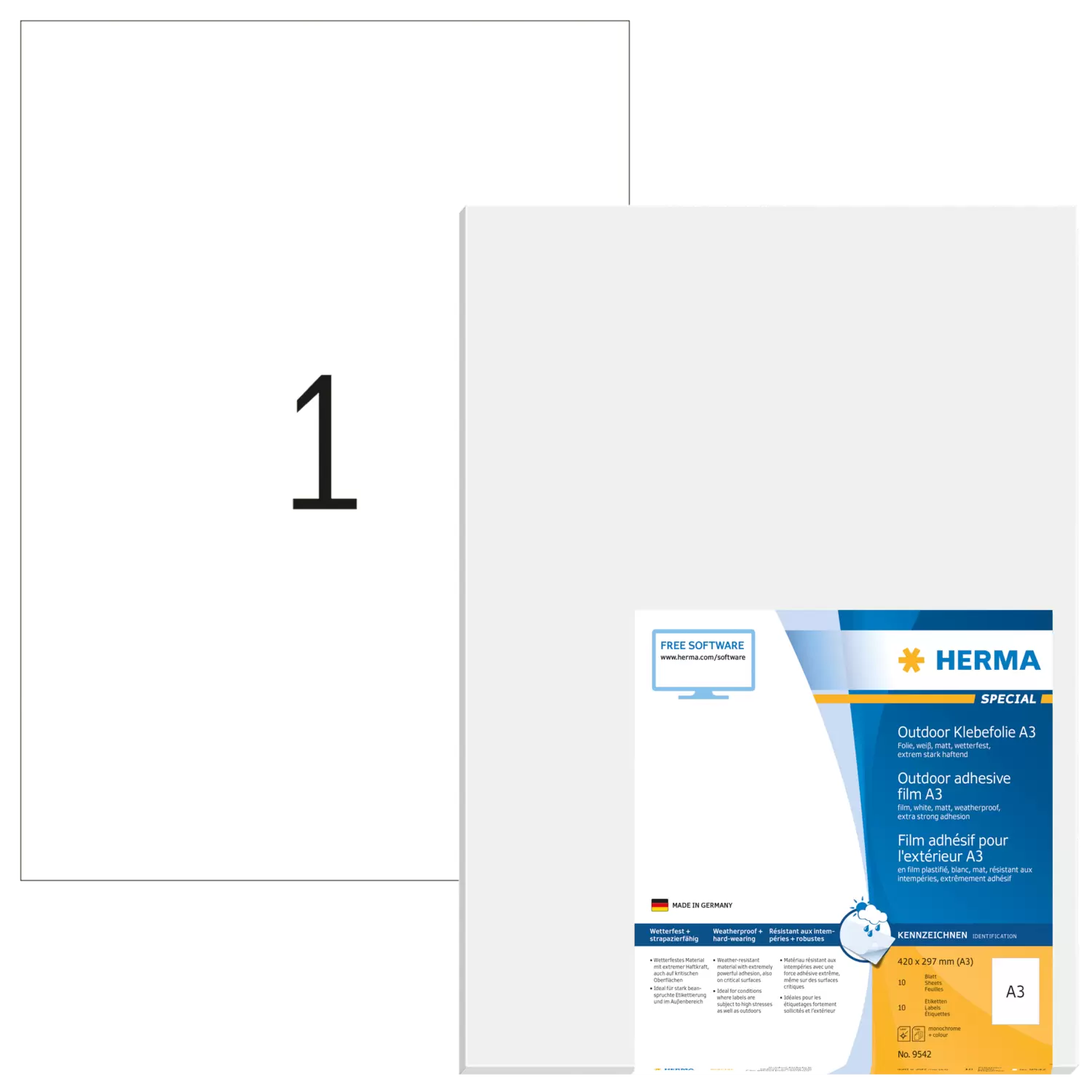 Weatherproof outdoor film labels A3, 297 x 420 mm, white, extremely strong adhesion, stretchable
