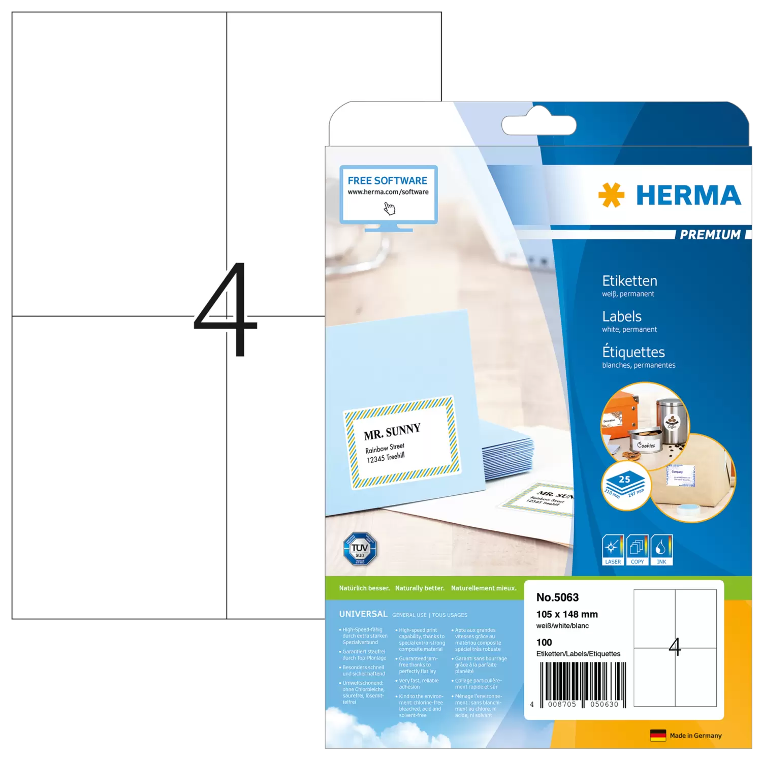 PREMIUM labels A4, 105 x 148 mm, white, permanent adhesion