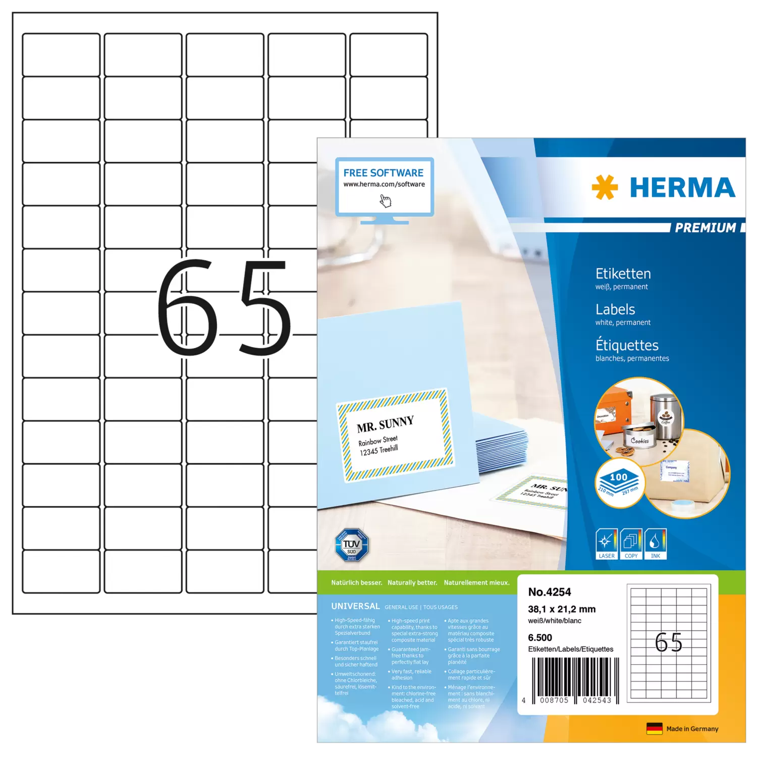 PREMIUM address labels A4, 38,1 x 21,2 mm, white, permanent adhesion