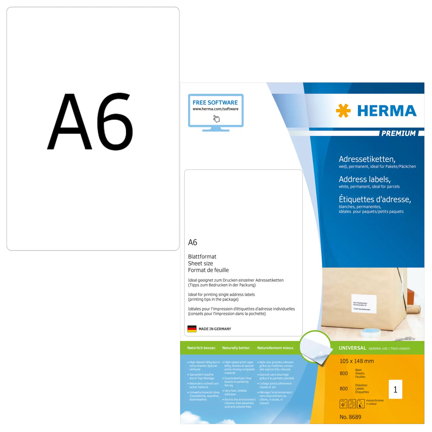 PREMIUM address labels A6, 105 x 148 mm, white, permanent adhesion