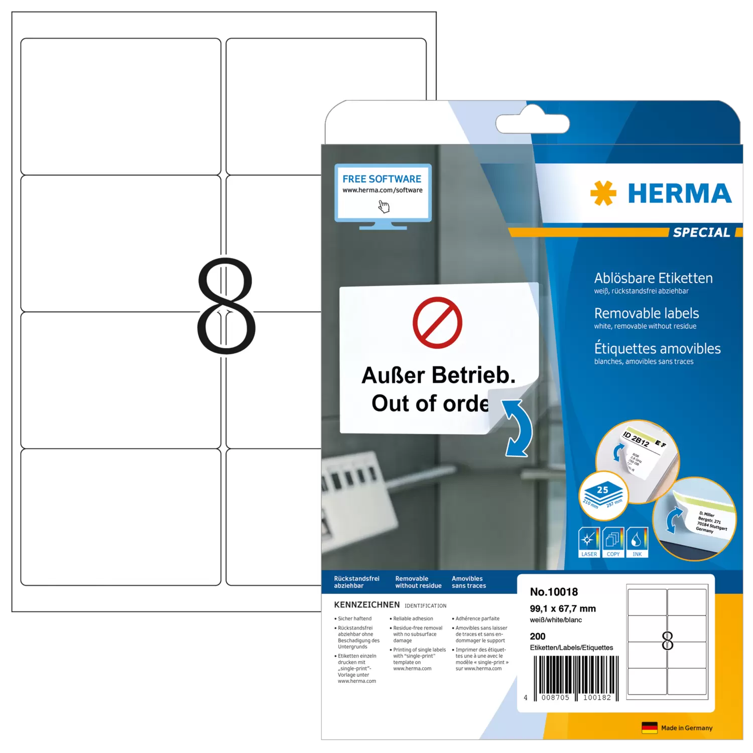 Removable address labels A4, 99,1 x 67,7 mm, white, opaque