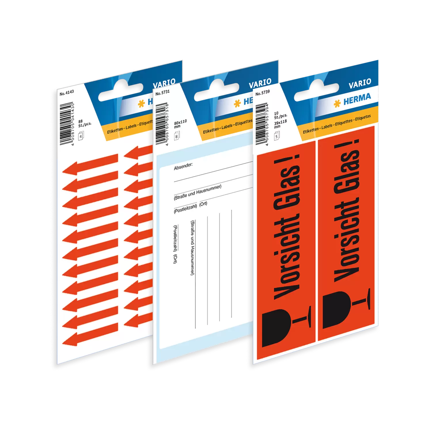 Caution labels "Vorsicht zerbrechlich" 39x118mm ...