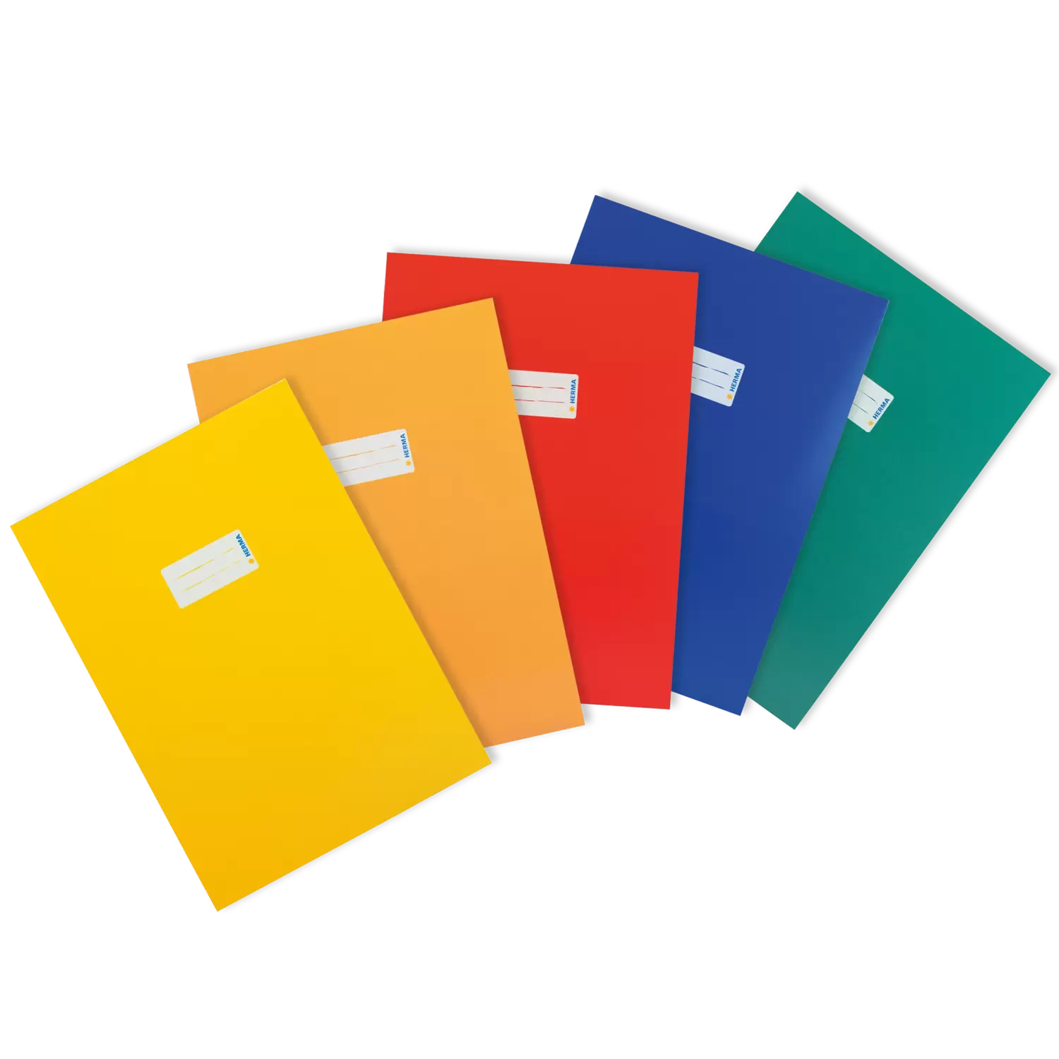 Cardboard exercise book covers in many different colours, for sizes A4 and A5, sturdy and of high quality, with inscription label, for optimum protection, ideal for school and university use