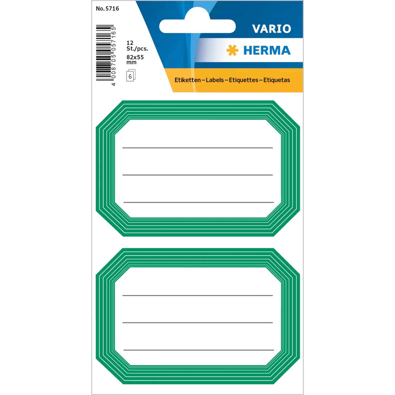 Simple school labels for boys and girls: These beech labels are made of high quality paper, in white and with a green frame. They can be used especially well for school products, such as notebooks, booklet covers or books, to record important information. Above all, the name, class, subject, school and, if applicable, the address should be noted on the label so that it is clear who the owner of the item is. Especially at school, it often happens that children have the same school supplies, which creates a high risk of confusion. With a practical name label, your child will no longer accidentally take home the book of the person sitting next to him/her, but will see at first glance which one belongs to him/her. The name stickers are self-adhesive and adhere particularly well to the HERMA plastic or paper exercise book covers.