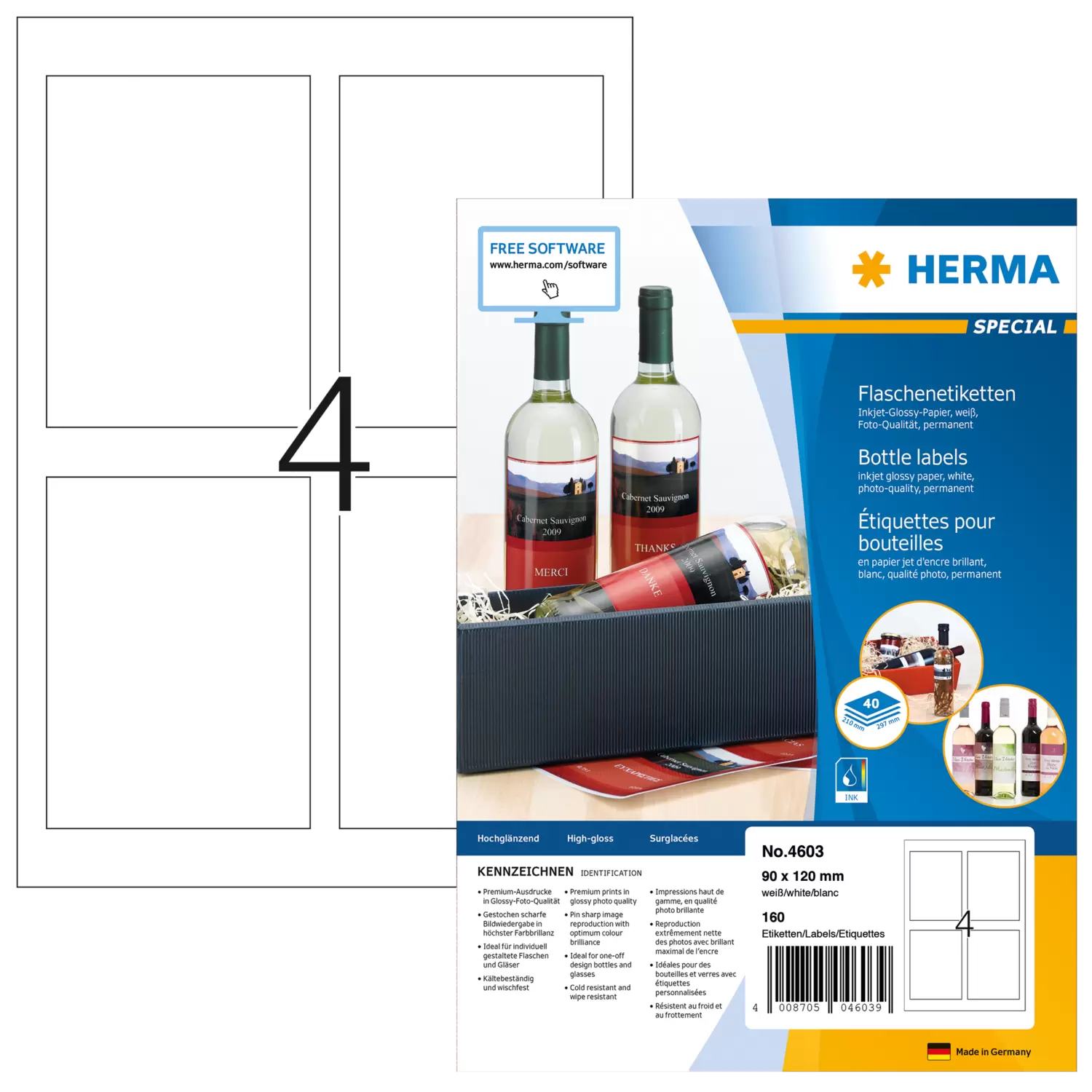 Bottle labels, inkjet A4, 90 x 120 mm, made of glossy paper, white, permanent adhesion