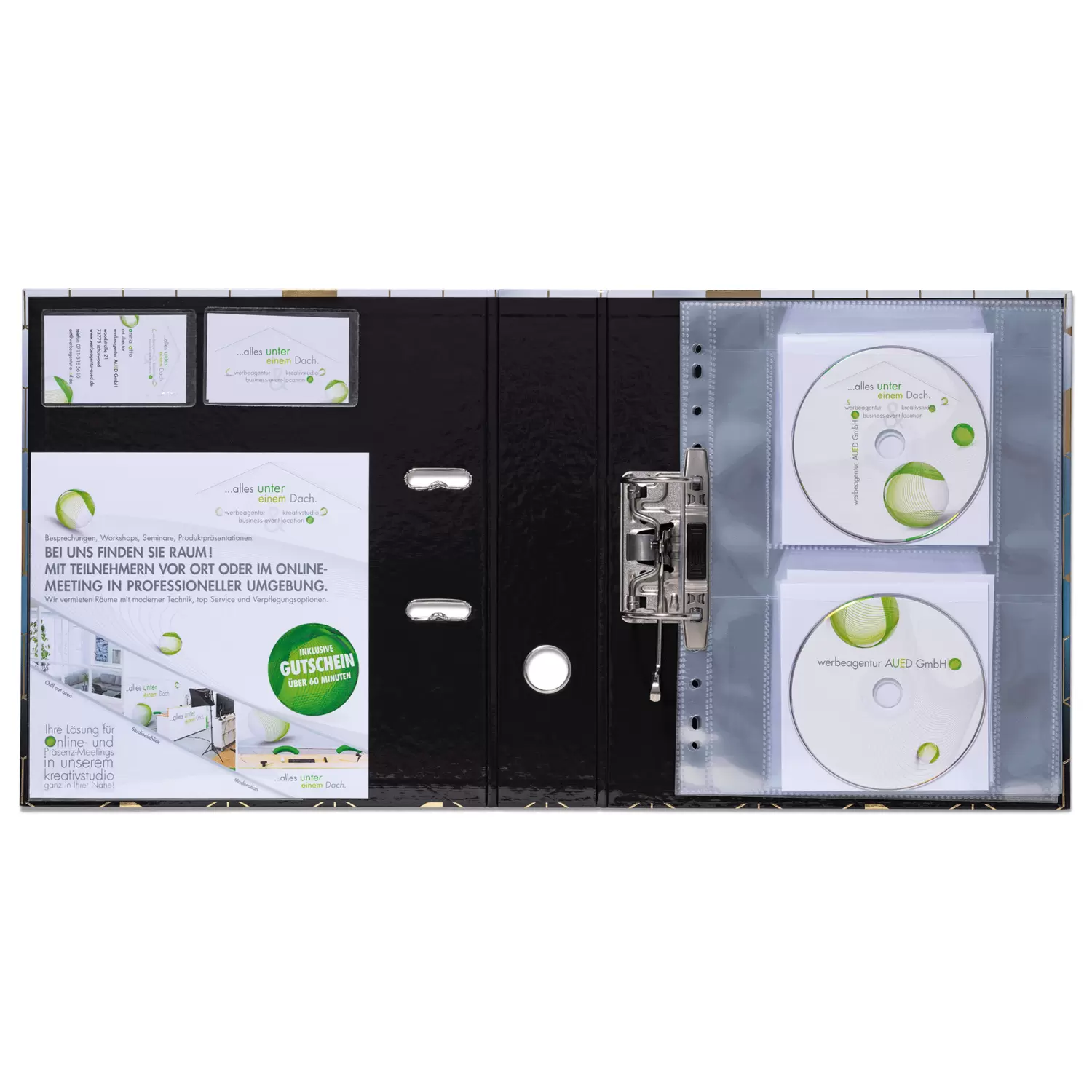 • Self-adhesive business card pockets in the format 95 x 60 mm