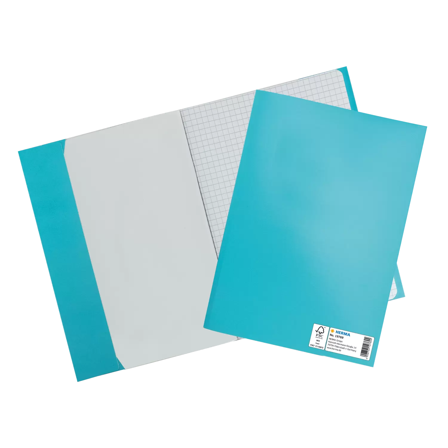 These turquoise exercise book covers from HERMA can be used for any exercise books in A5 size. They are perfect for work documents, exercise books and copybooks. Use them at school, university or work to protect your materials from damage and bending. Made of sturdy cardboard instead of plastic, HERMA exercise book covers are rugged and durable. The strong material, in proven HERMA quality, is friendlier to the environment than conventional plastic. The covers keep out dirt and moisture and keep the contents well protected. You have 16 different colours to choose from. On the front is a highly visible inscription label for information on the owner or subject. The perfect way to stay tidy and well organised.