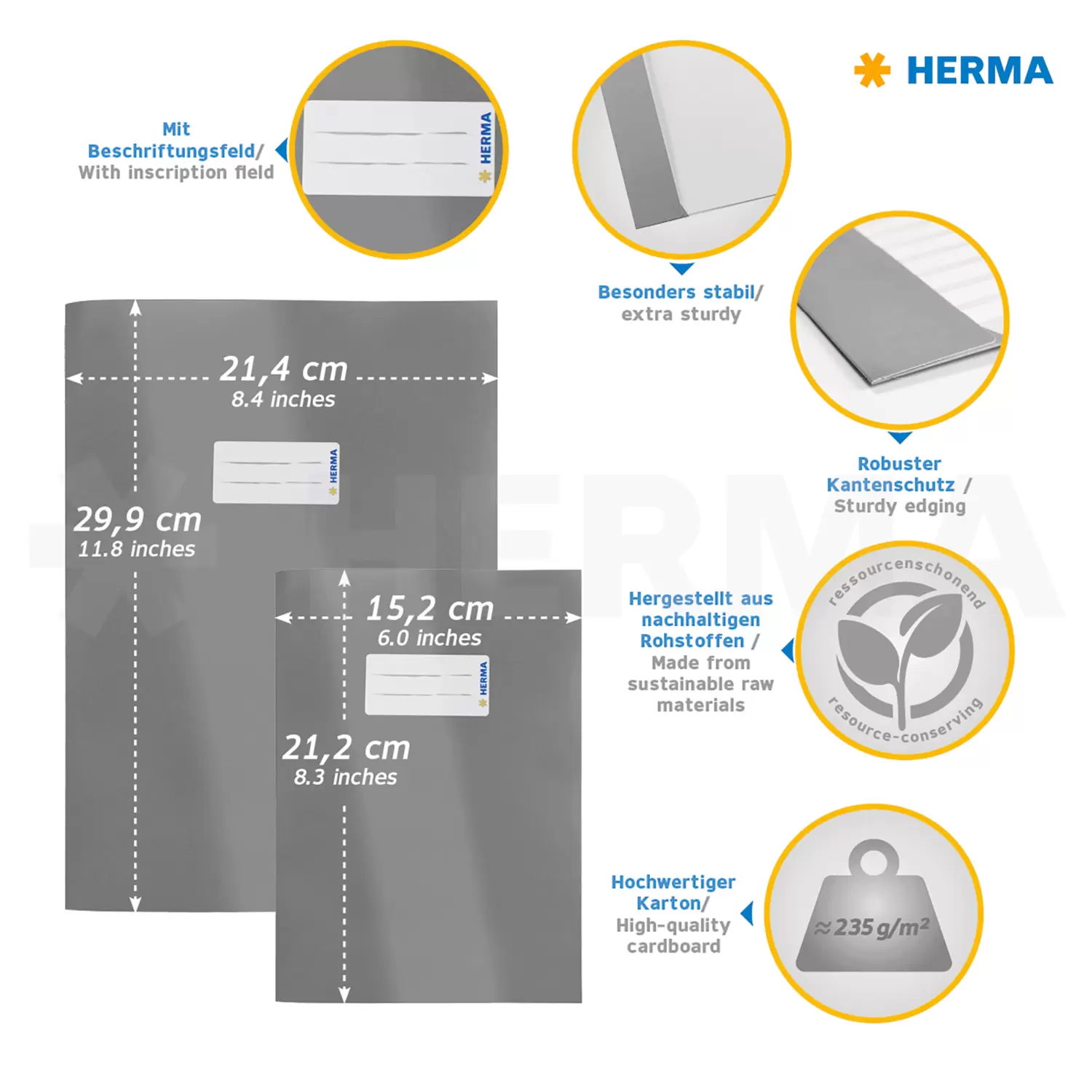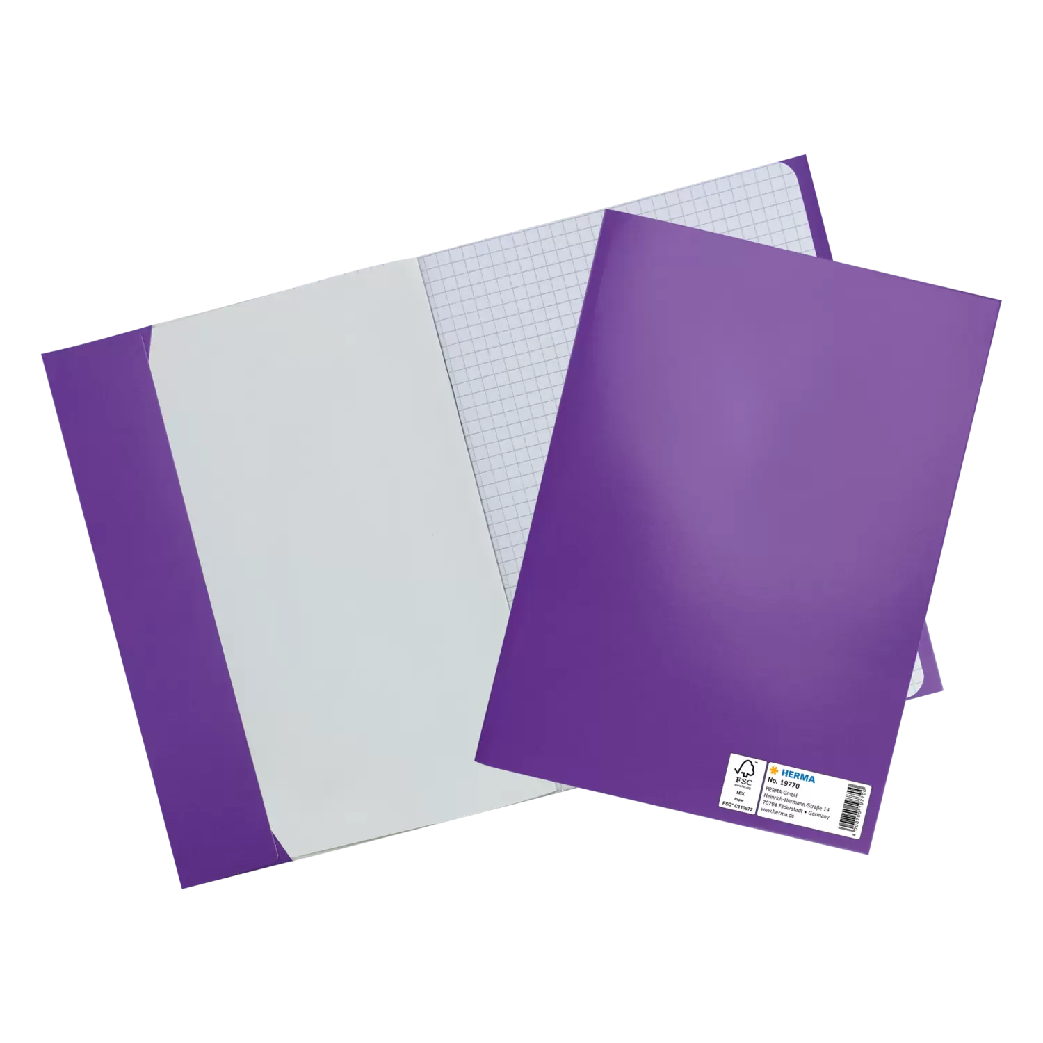 Thes violet exercise book covers from HERMA can be used for any exercise books in A5 size. They are perfect for work documents, exercise books and copybooks. Use them at school, university or work to protect your materials from damage and bending. Made of sturdy cardboard instead of plastic, HERMA exercise book covers are rugged and durable. The strong material, in proven HERMA quality, is friendlier to the environment than conventional plastic. The covers keep out dirt and moisture and keep the contents well protected. You have 16 different colours to choose from. On the front is a highly visible inscription label for information on the owner or subject. The perfect way to stay tidy and well organised.