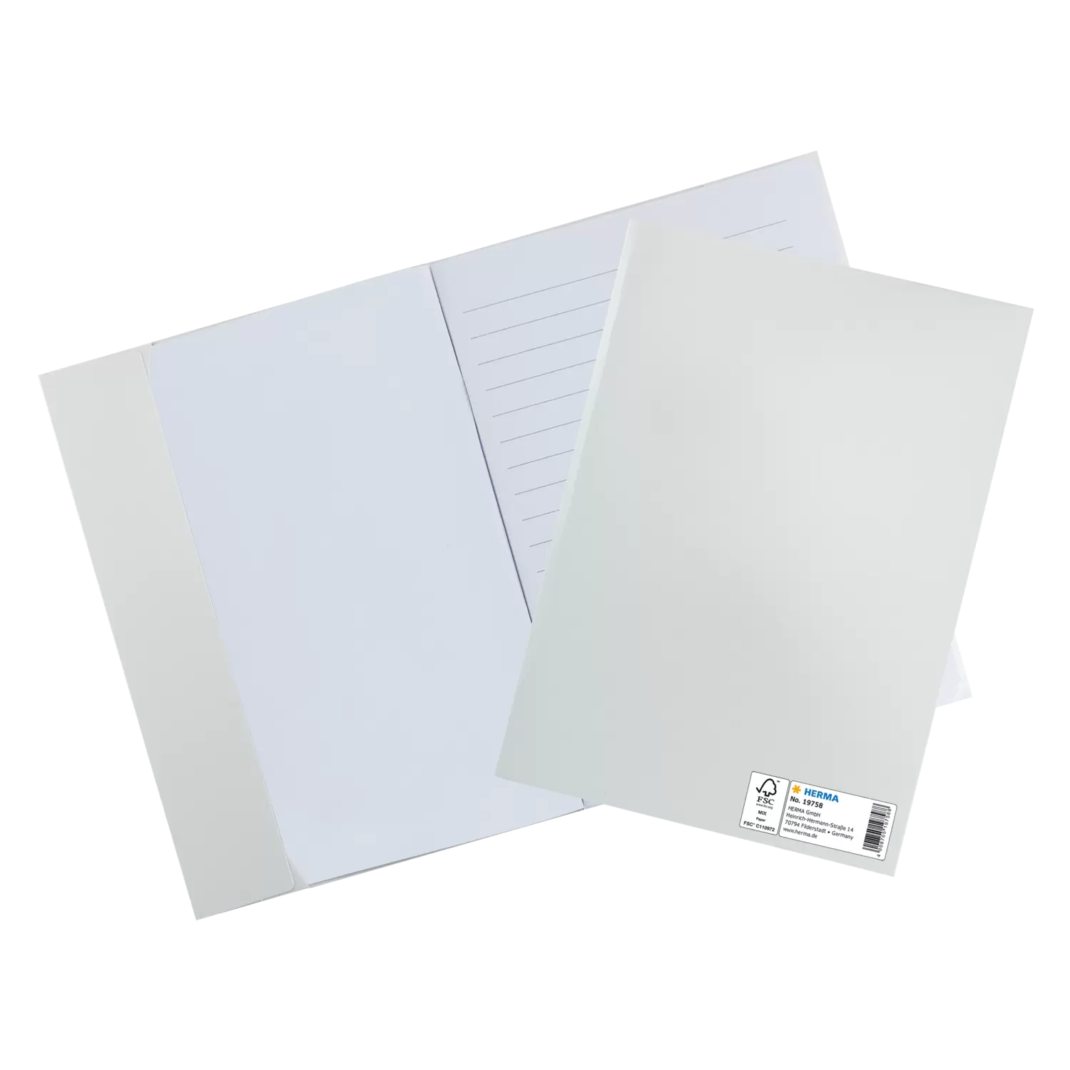 These white exercise book covers from HERMA can be used for any exercise books in A5 size. They are perfect for work documents, exercise books and copybooks. Use them at school, university or work to protect your materials from damage and bending. Made of sturdy cardboard instead of plastic, HERMA exercise book covers are rugged and durable. The strong material, in proven HERMA quality, is friendlier to the environment than conventional plastic. The covers keep out dirt and moisture and keep the contents well protected. You have 16 different colours to choose from. On the front is a highly visible inscription label for information on the owner or subject. The perfect way to stay tidy and well organised.