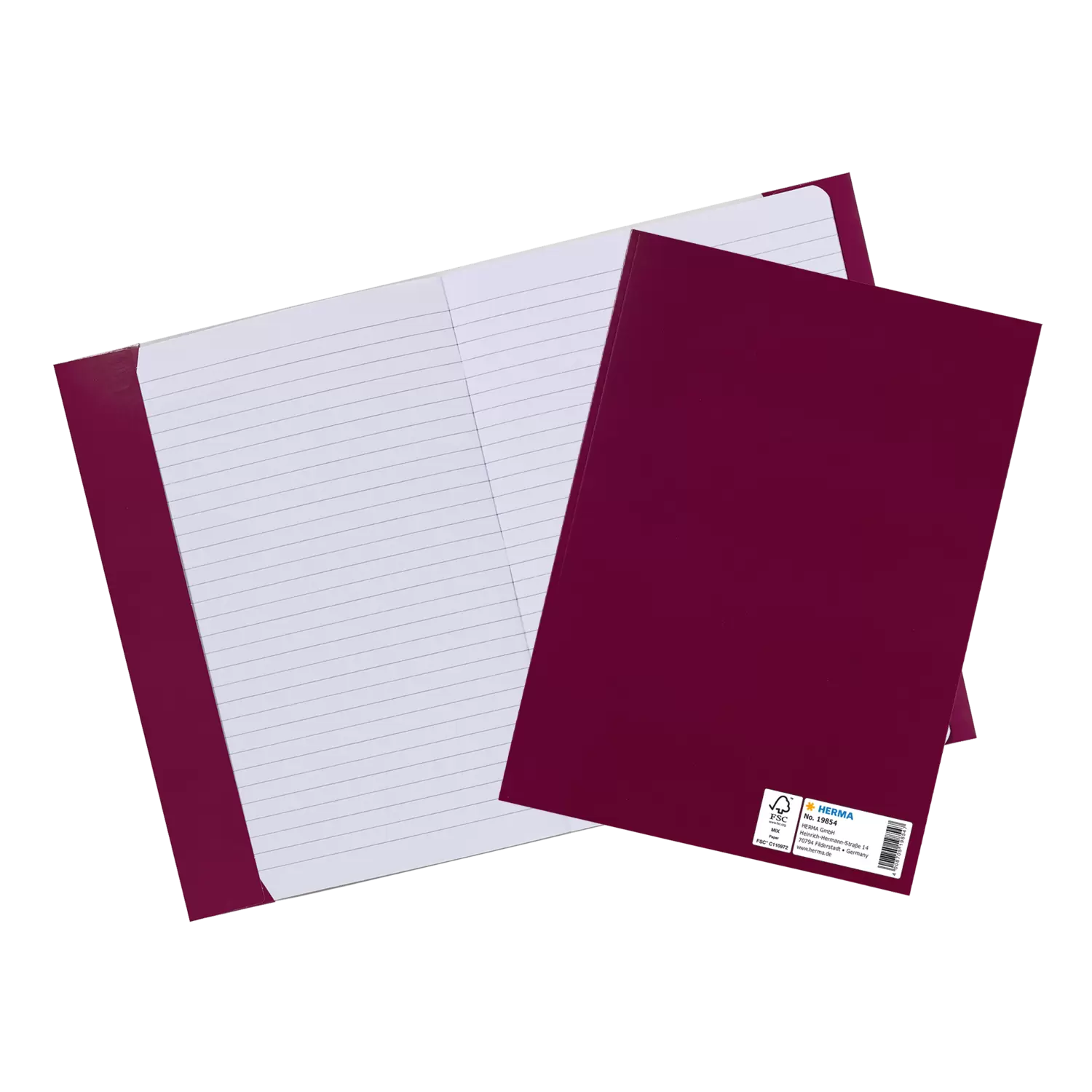 These wine red exercise book covers from HERMA can be used for any exercise books in A5 size. They are perfect for work documents, exercise books and copybooks. Use them at school, university or work to protect your materials from damage and bending. Made of sturdy cardboard instead of plastic, HERMA exercise book covers are rugged and durable. The strong material, in proven HERMA quality, is friendlier to the environment than conventional plastic. The covers keep out dirt and moisture and keep the contents well protected. You have 16 different colours to choose from. On the front is a highly visible inscription label for information on the owner or subject. The perfect way to stay tidy and well organised.
