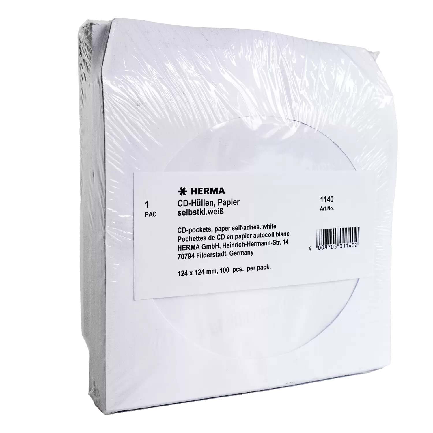 CD/DVD pockets made of paper, white, with adhesive dot 100 pcs.