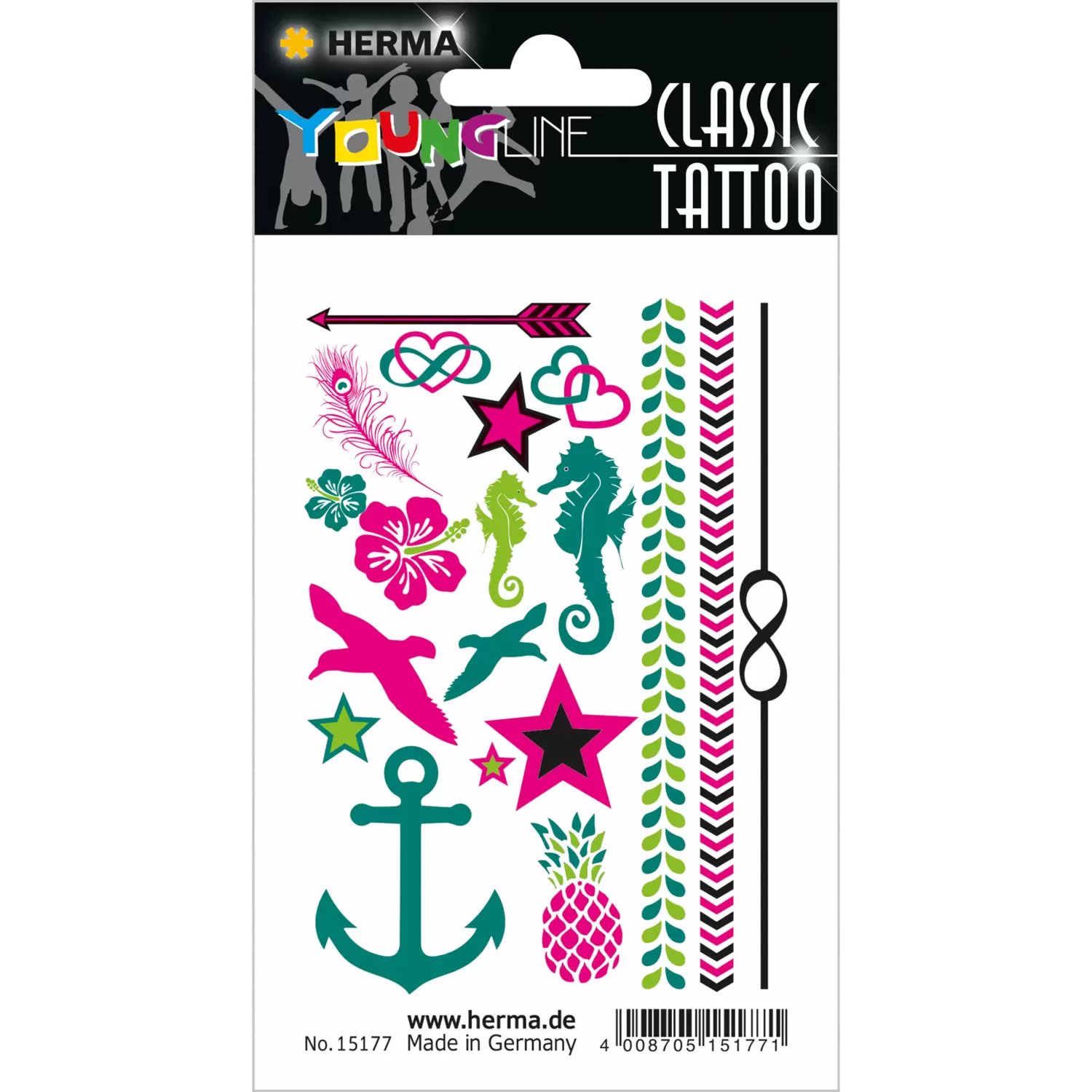 Apply them in just a few minutes. HERMA CLASSIC tattoos colour are "Made in Germany" and comply with the EU Cosmetics Regulation.
