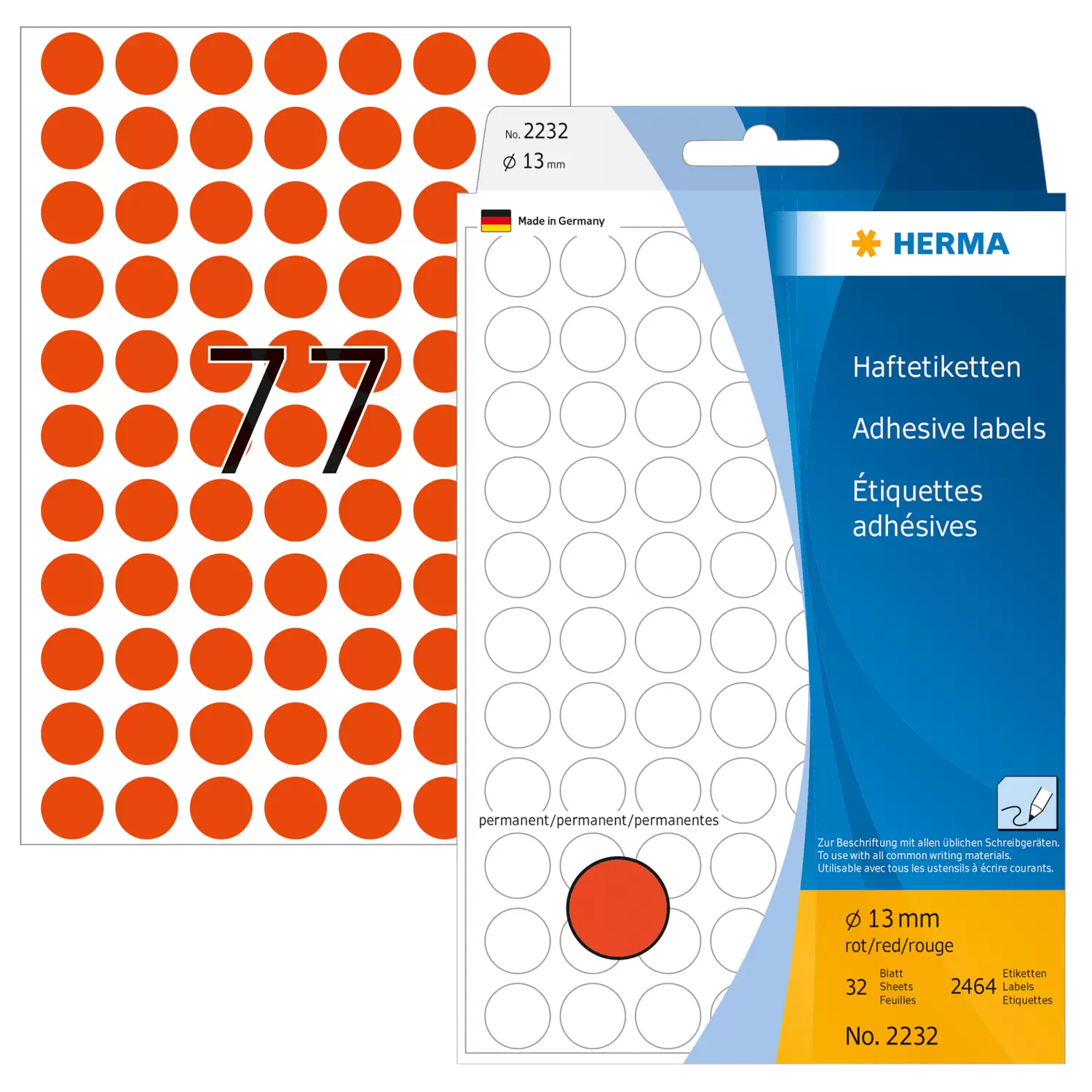 Multi-purpose labels / colour dots, Ø 13 mm, round, red, permanent adhesion, for hand lettering