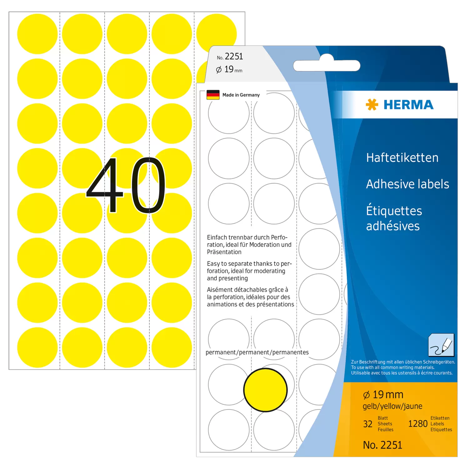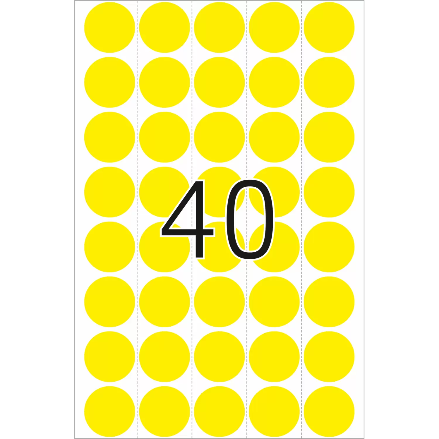 Multi-purpose labels / colour dots, Ø 19 mm, round, yellow, paper matt backing paper perforated