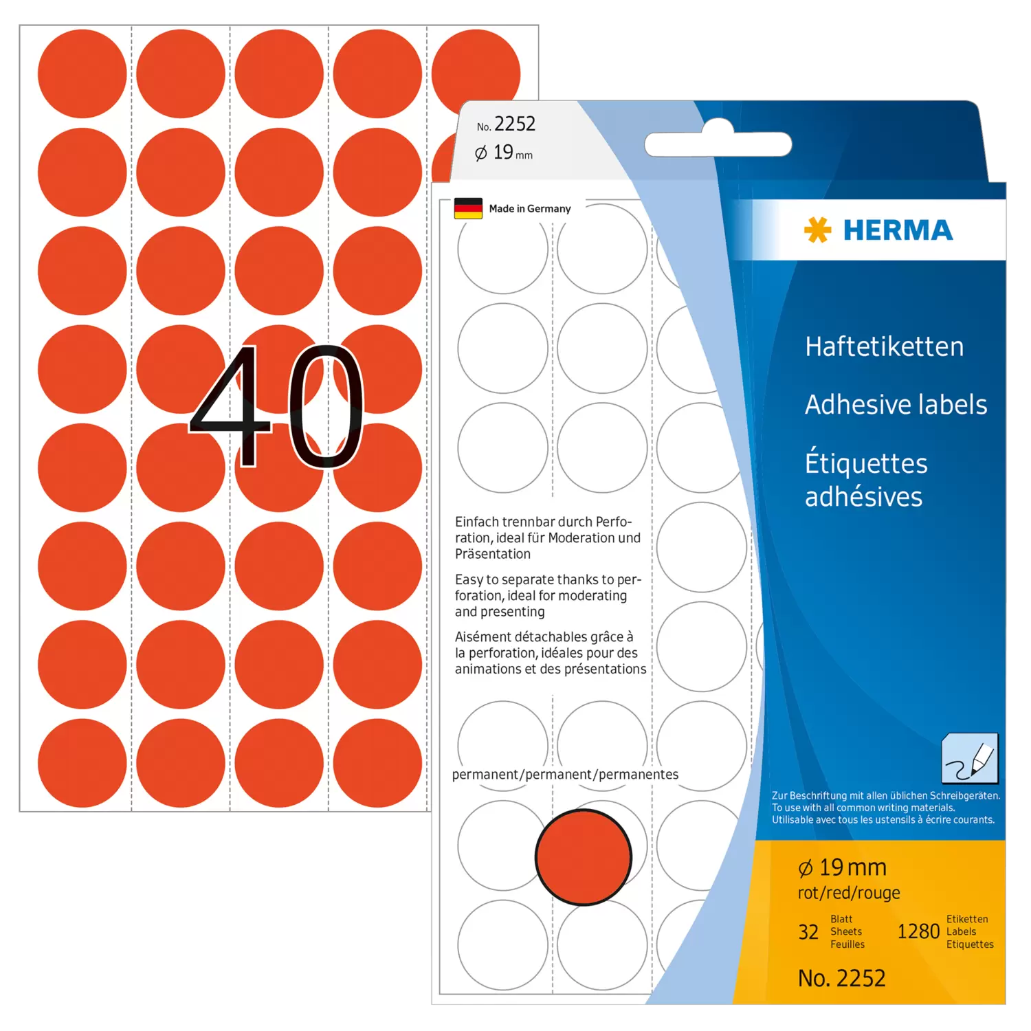 Multi-purpose labels / colour dots, Ø 19 mm, round, red, paper matt backing paper perforated