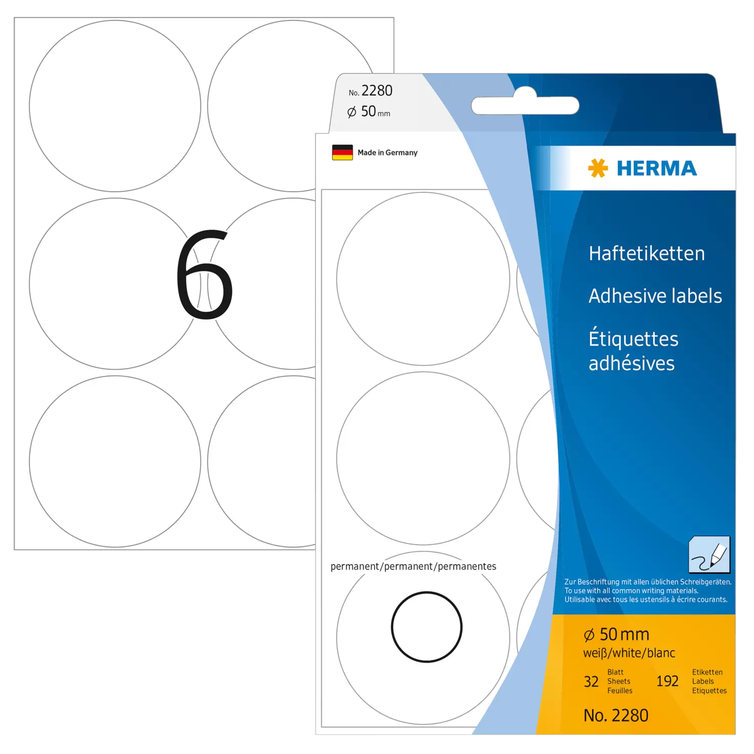 Multi-purpose labels / colour dots, Ø 50 mm, round, white, permanent adhesion, for hand lettering