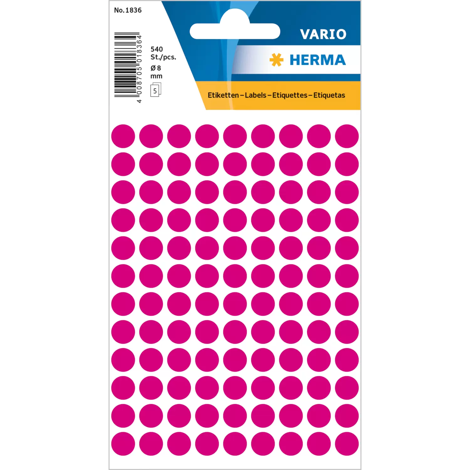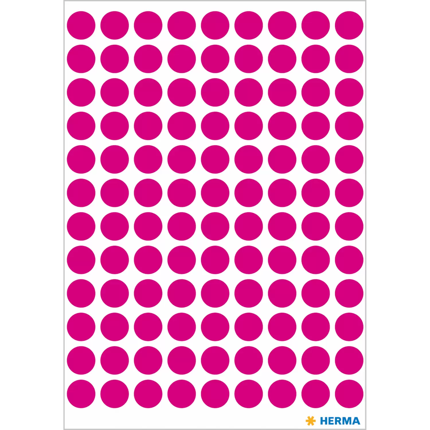 Multi-purpose labels / colour dots, Ø 8 mm, round, pink permanent adhesion, for hand lettering