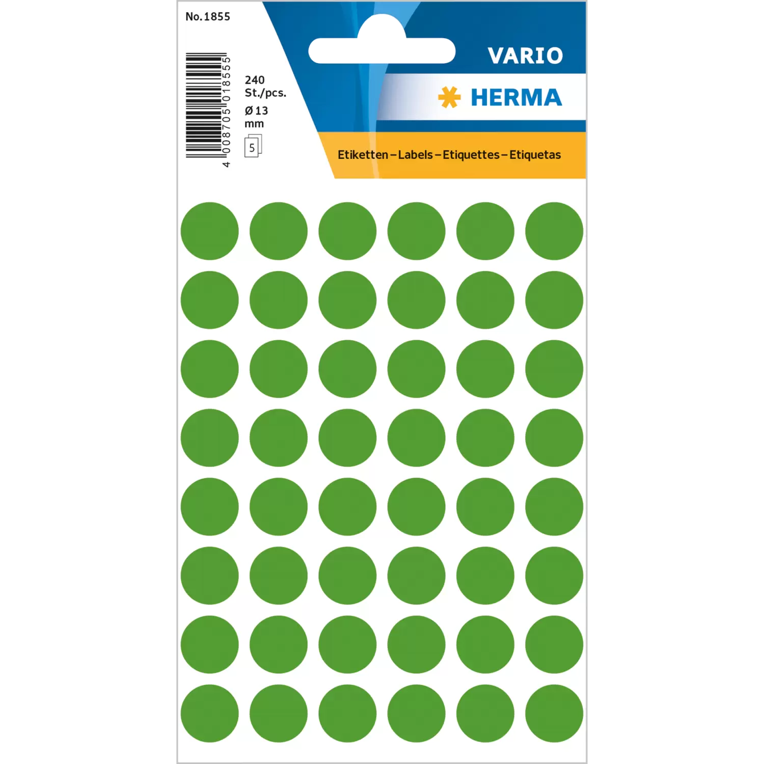 Multi-purpose labels / colour dots, Ø 13 mm, round, dark green, permanent adhesion, for hand letteri