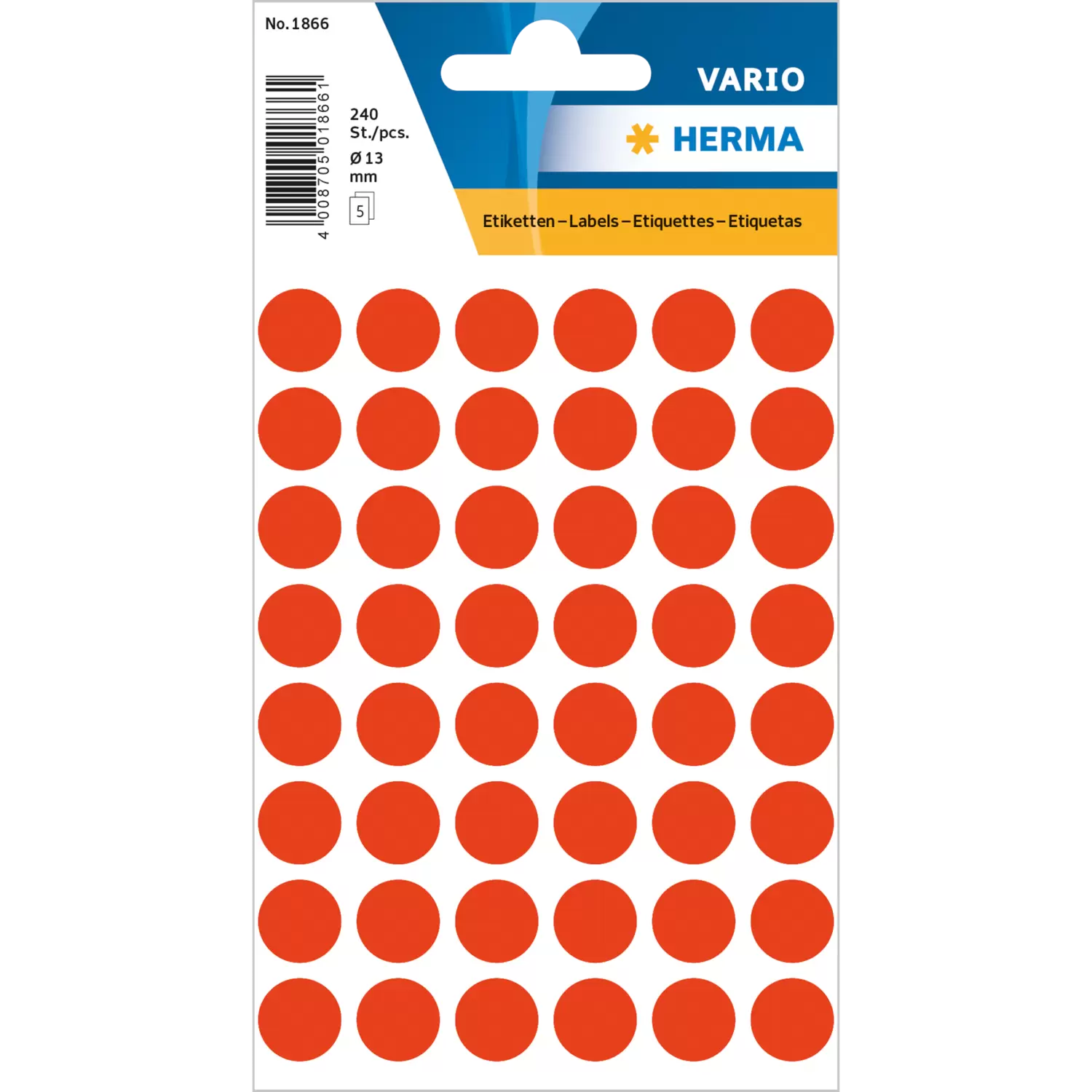 Multi-purpose labels / colour dots, Ø 13 mm, round, luminous red, permanent adhesion, for hand lette