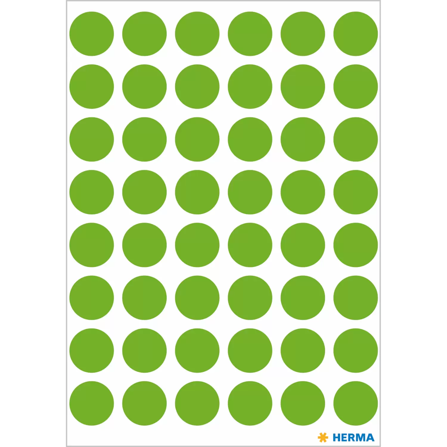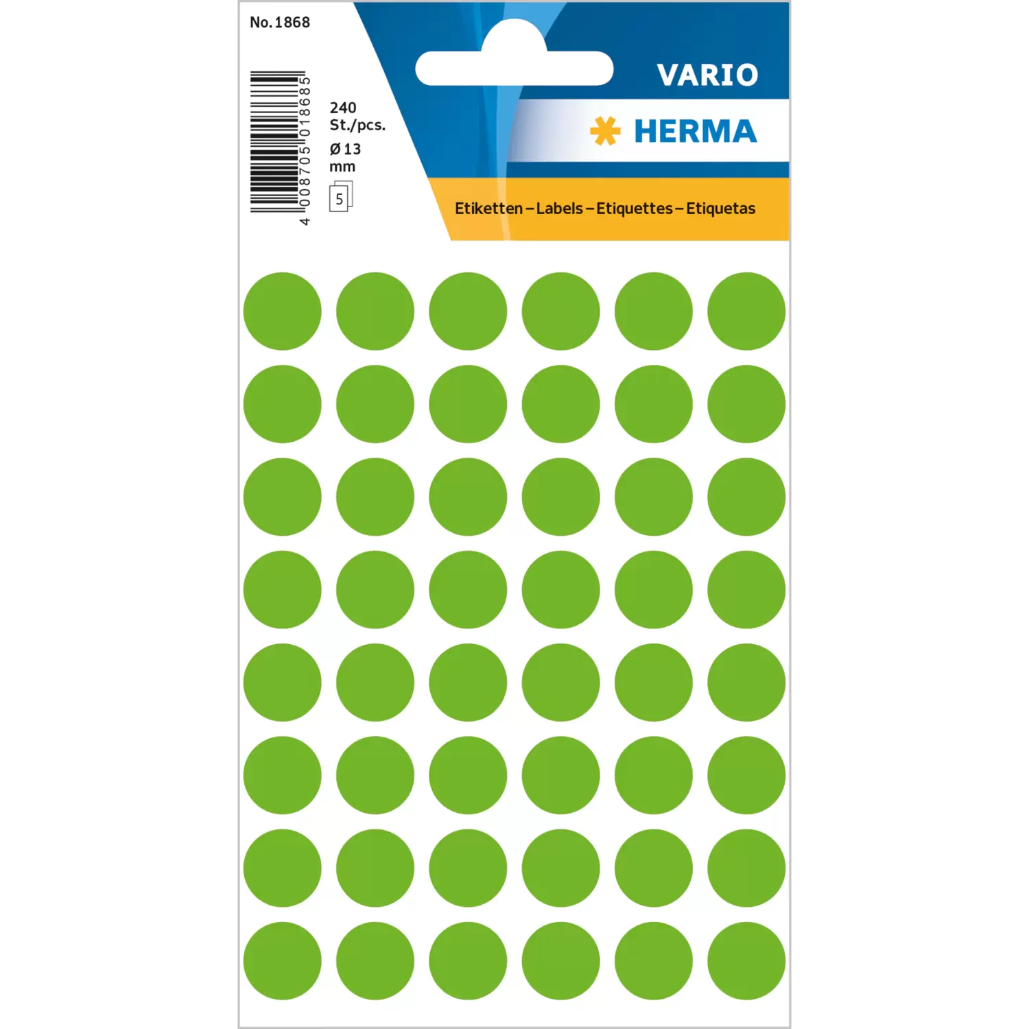 Multi-purpose labels / colour dots, Ø 13 mm, round, luminous green, permanent adhesion, for hand let