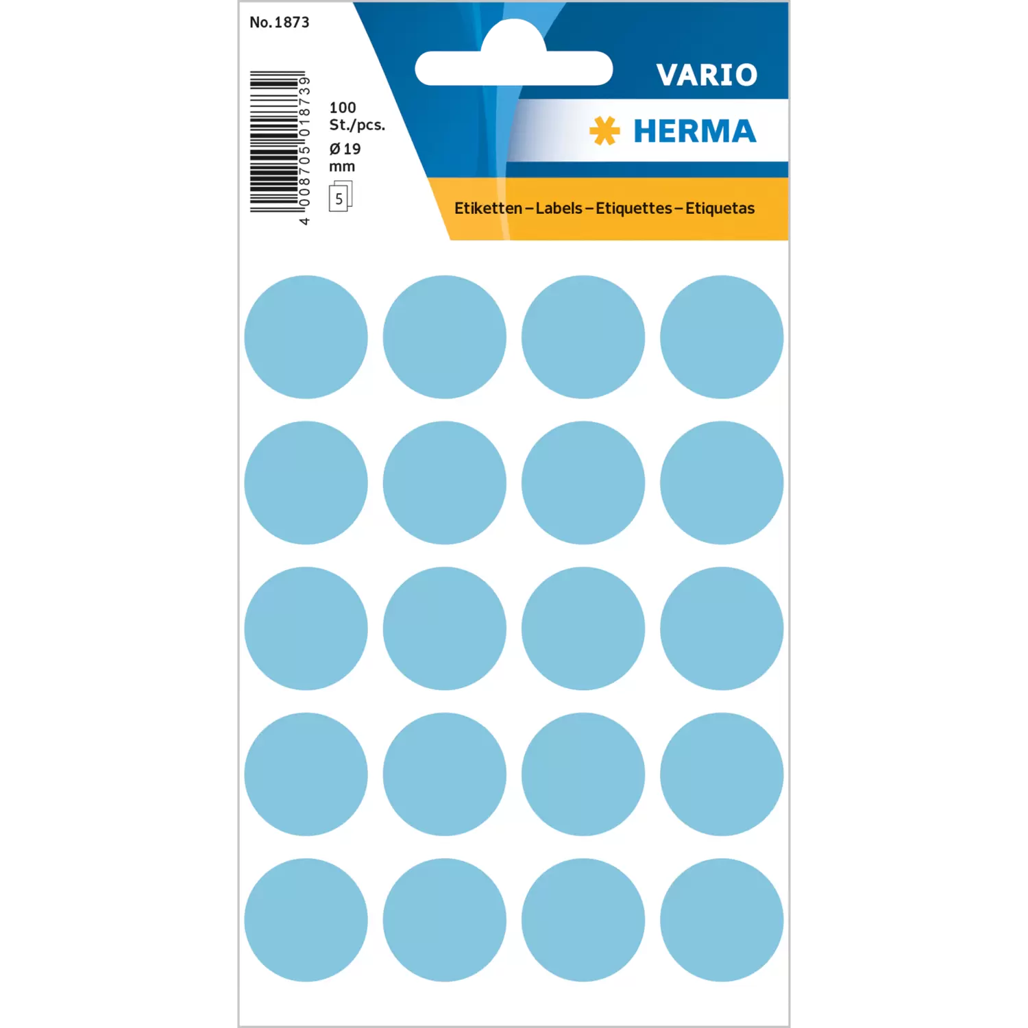 Multi-purpose labels / colour dots, Ø 19 mm, round, blue, permanent adhesion, for hand lettering