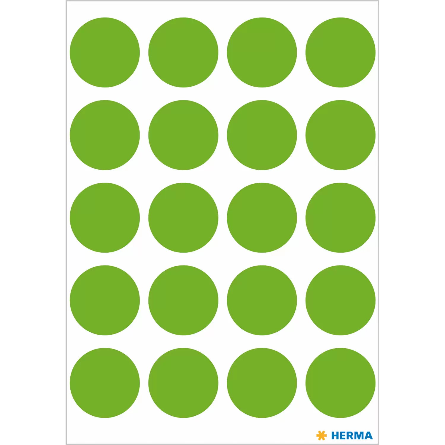Multi-purpose labels / colour dots, Ø 19 mm, round, luminous green, permanent adhesion, for hand let