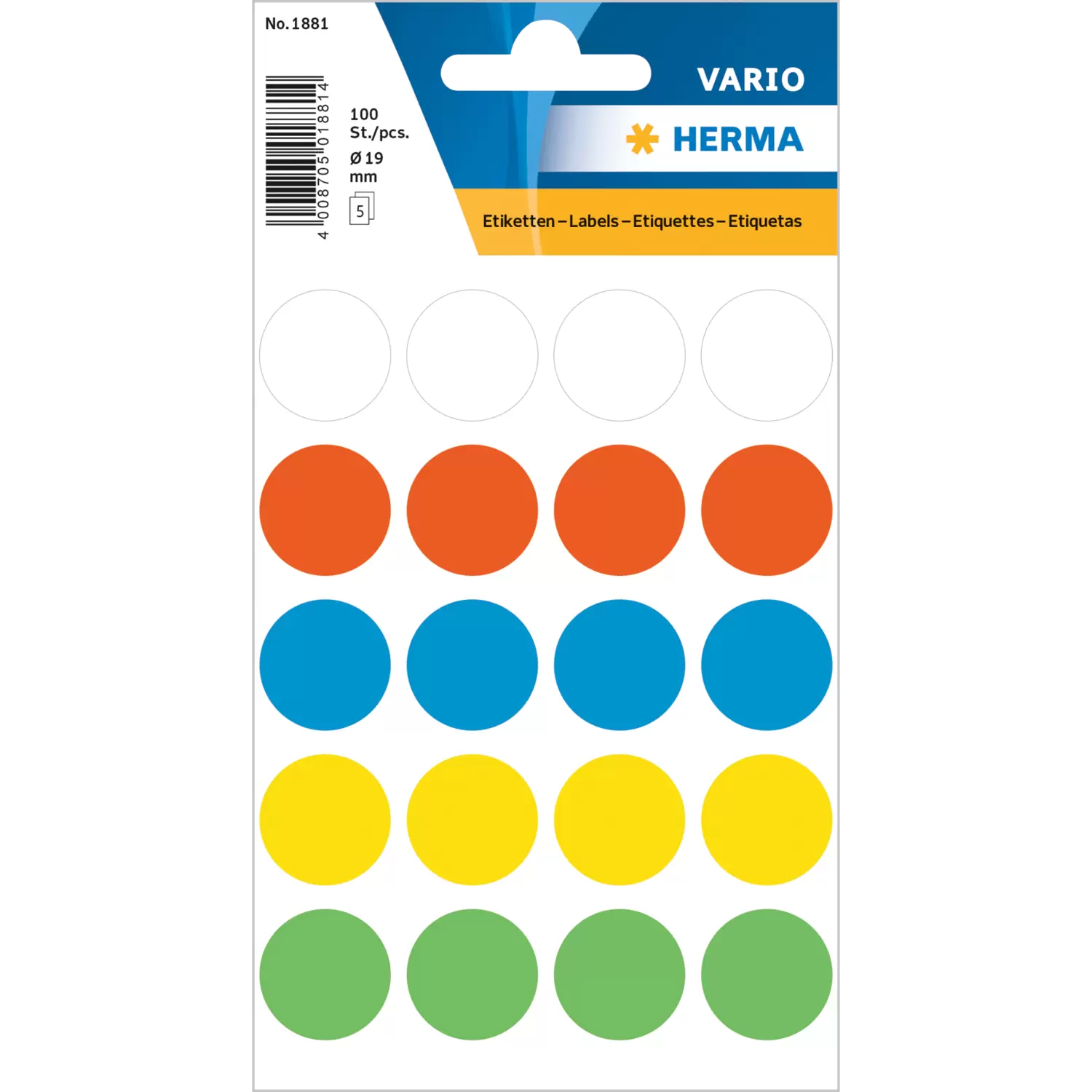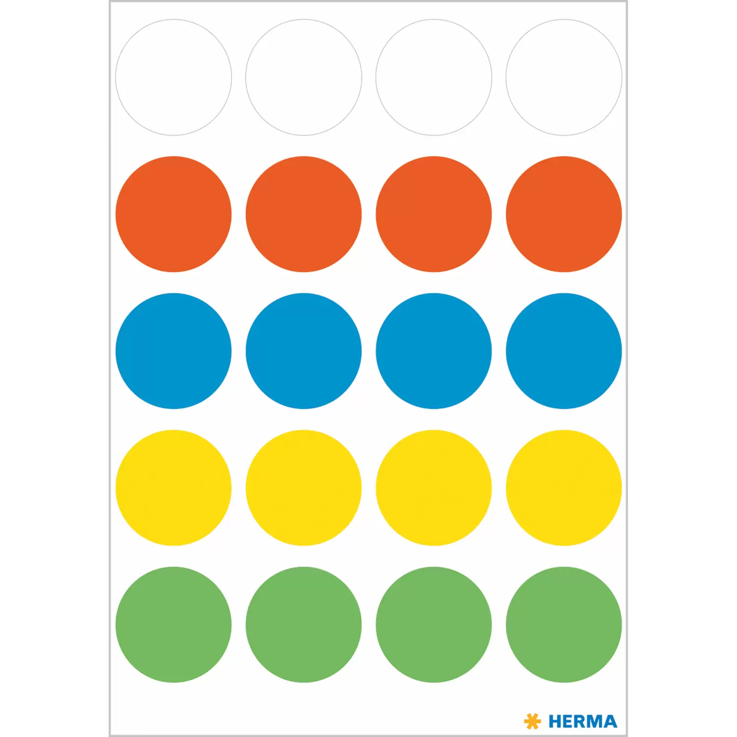 Multi-purpose labels / colour dots, Ø 19 mm, round, assorted colours permanent adhesion, for hand le