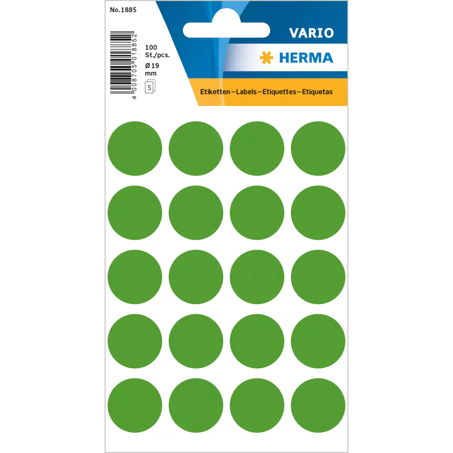 Multi-purpose labels / colour dots, Ø 19 mm, round, dark green, permanent adhesion, for hand letteri