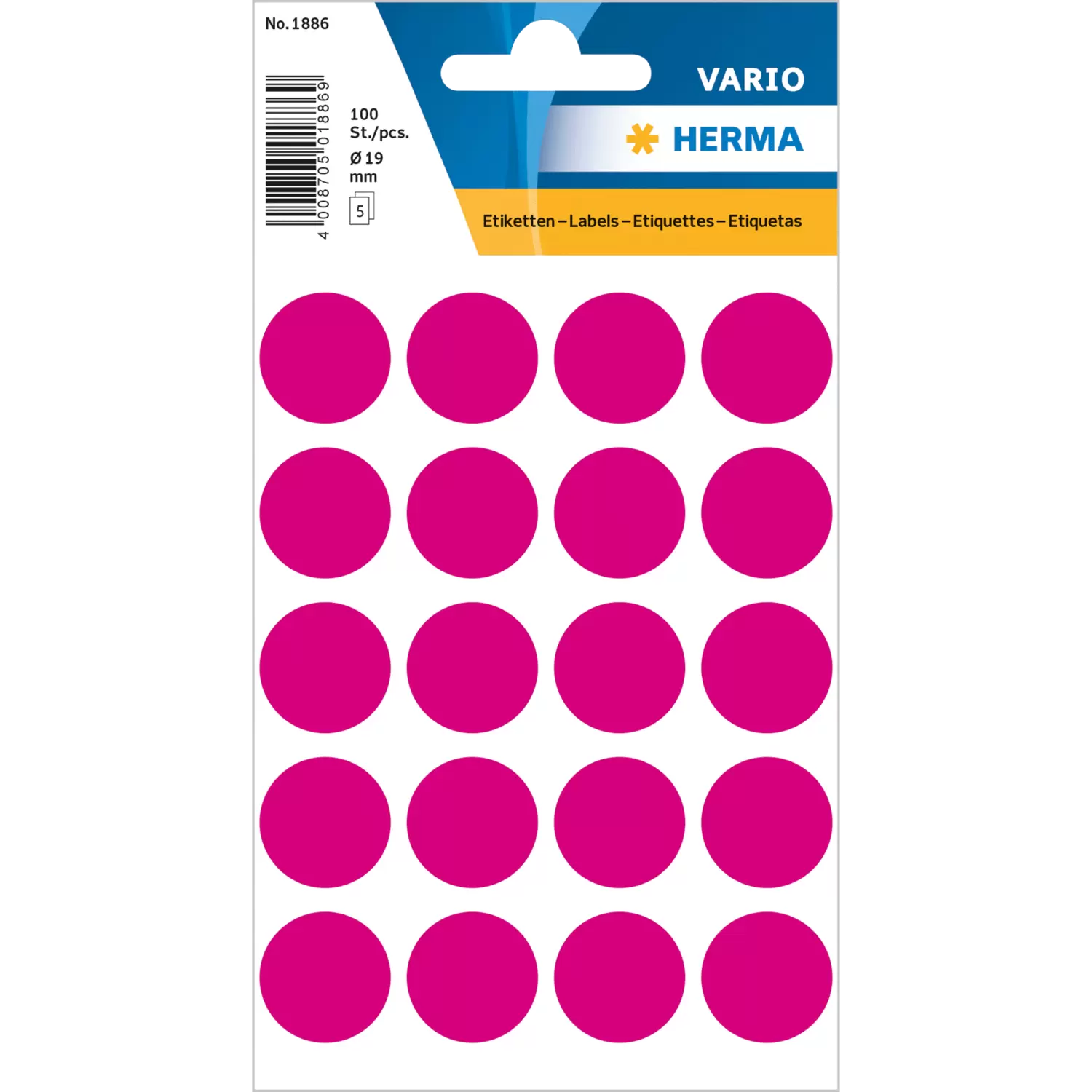 Multi-purpose labels / colour dots, Ø 19 mm, round, pink permanent adhesion, for hand lettering