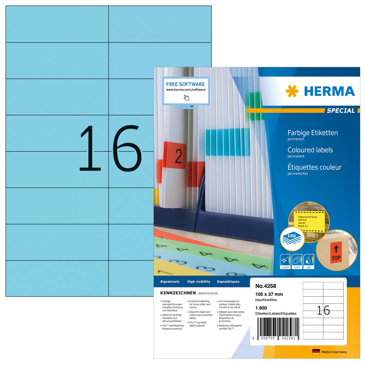 - Coloured labels create order and clarity. Also ideal for drawing attention to important information