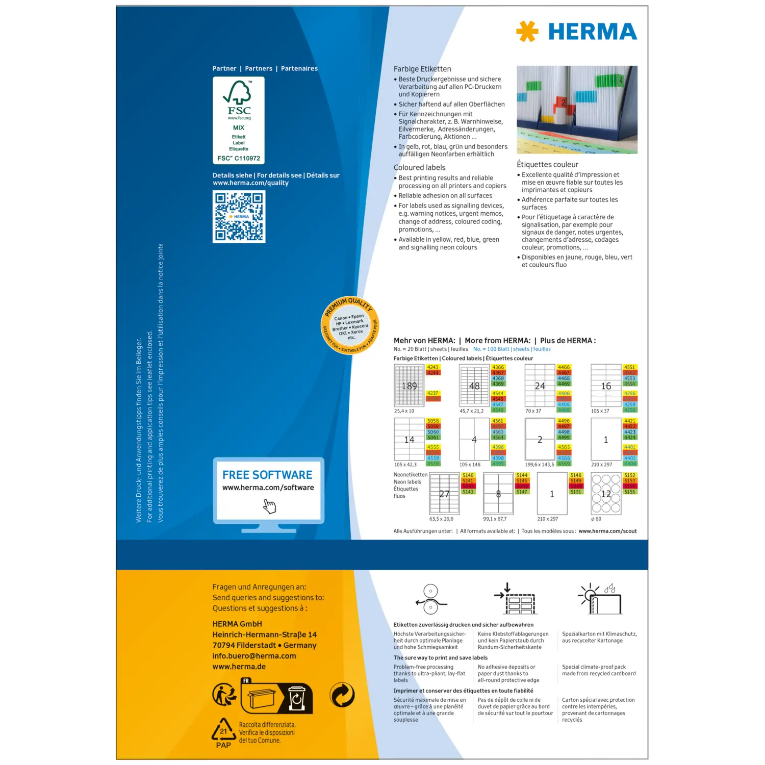 - Coloured labels create order and clarity. Also ideal for drawing attention to important information