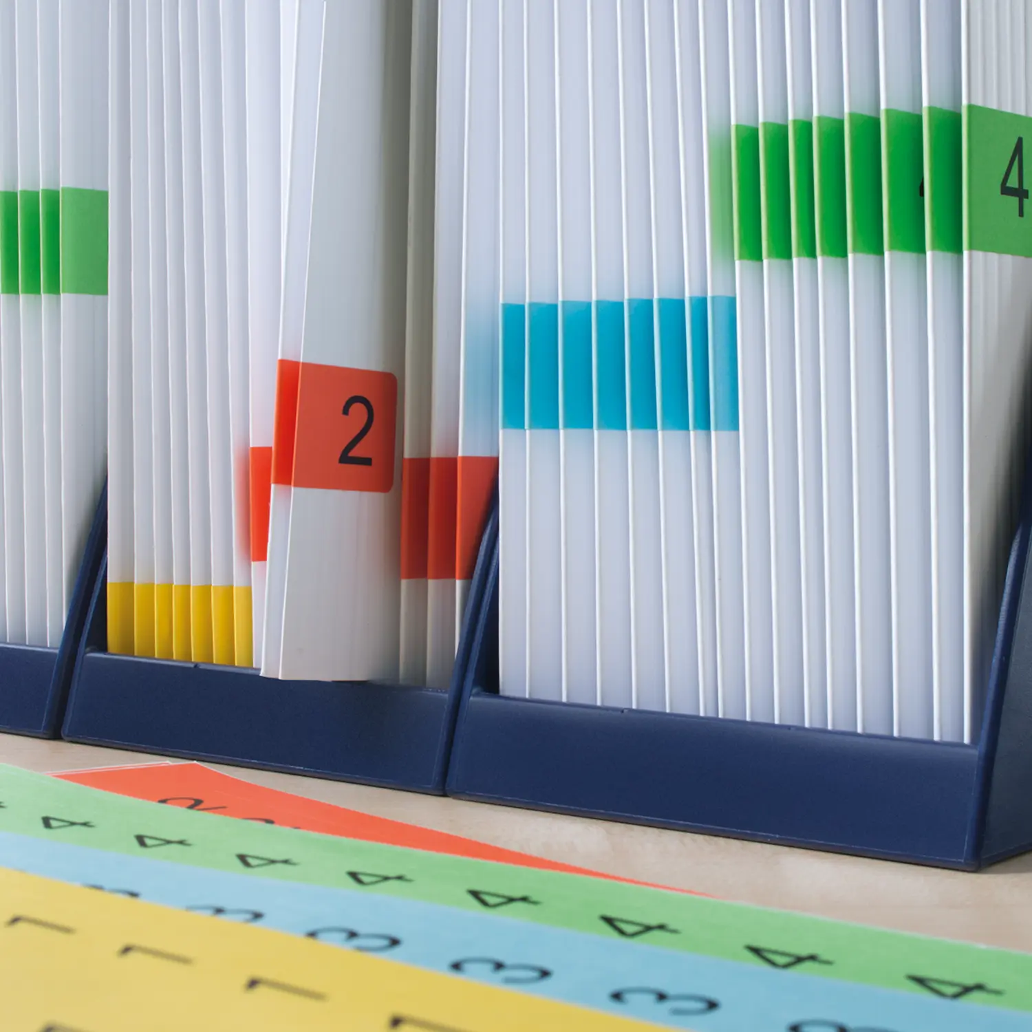 - Coloured labels create order and clarity. Also ideal for drawing attention to important information