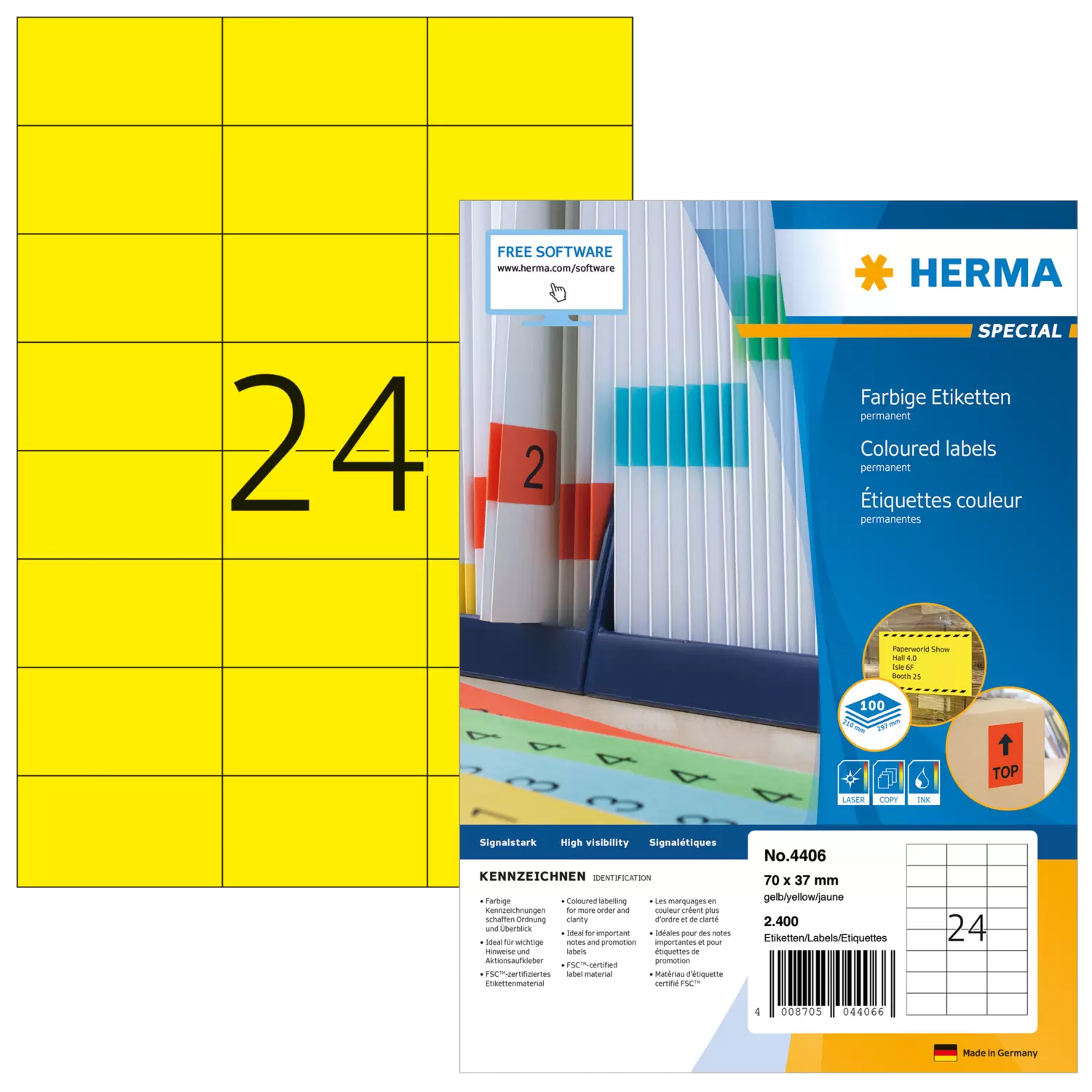 Coloured labels A4, 70 x 37 mm, yellow, permanent adhesion