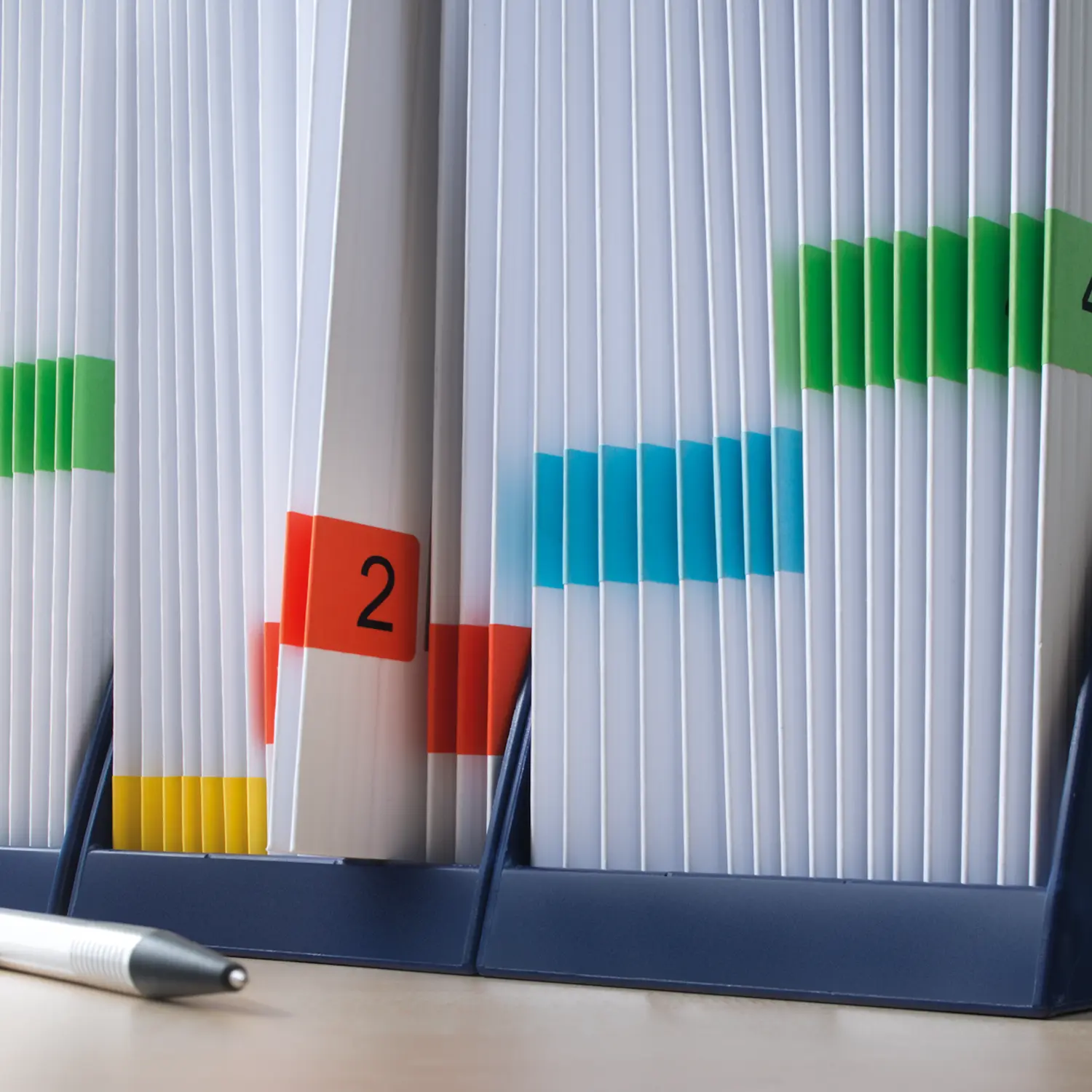 - Coloured labels create order and clarity. Also ideal for drawing attention to important information