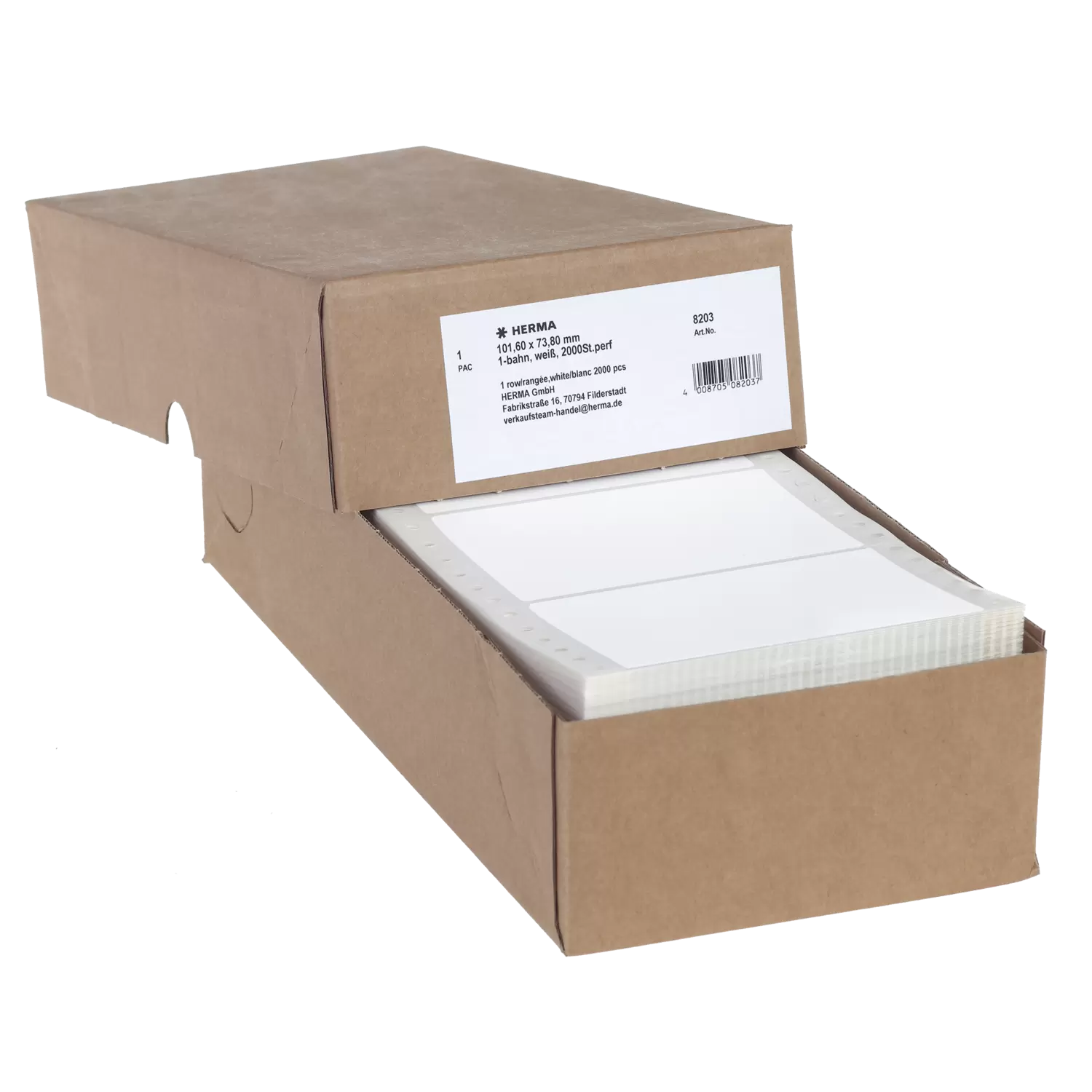 Continuous computer labels, 101,6 x 73,8 mm, 1 row, white, perforated, permanent adhesion