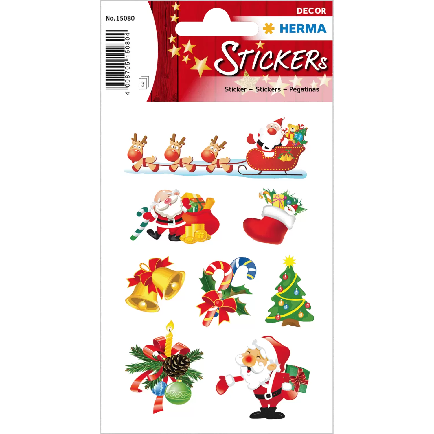 Self-adhesive decorative stickers, colourful printed with Christmas motifs. For decoration of presents, cards, or letters.