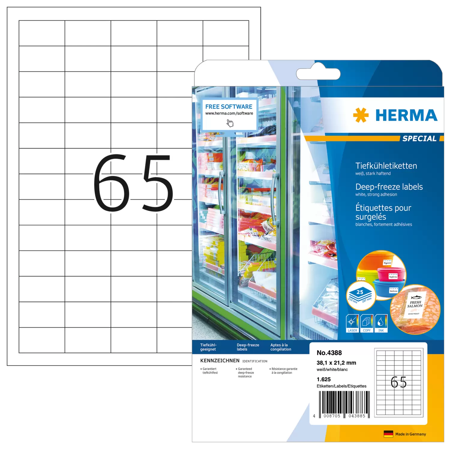 Deep-freeze labels A4, 38,1 x 21,2 mm, white, freezer-proof