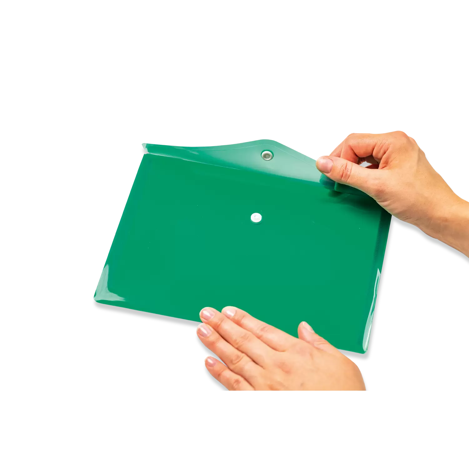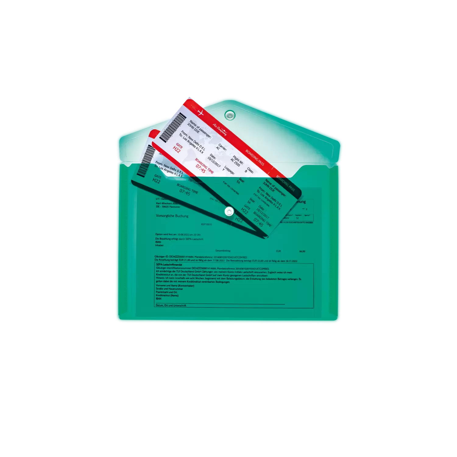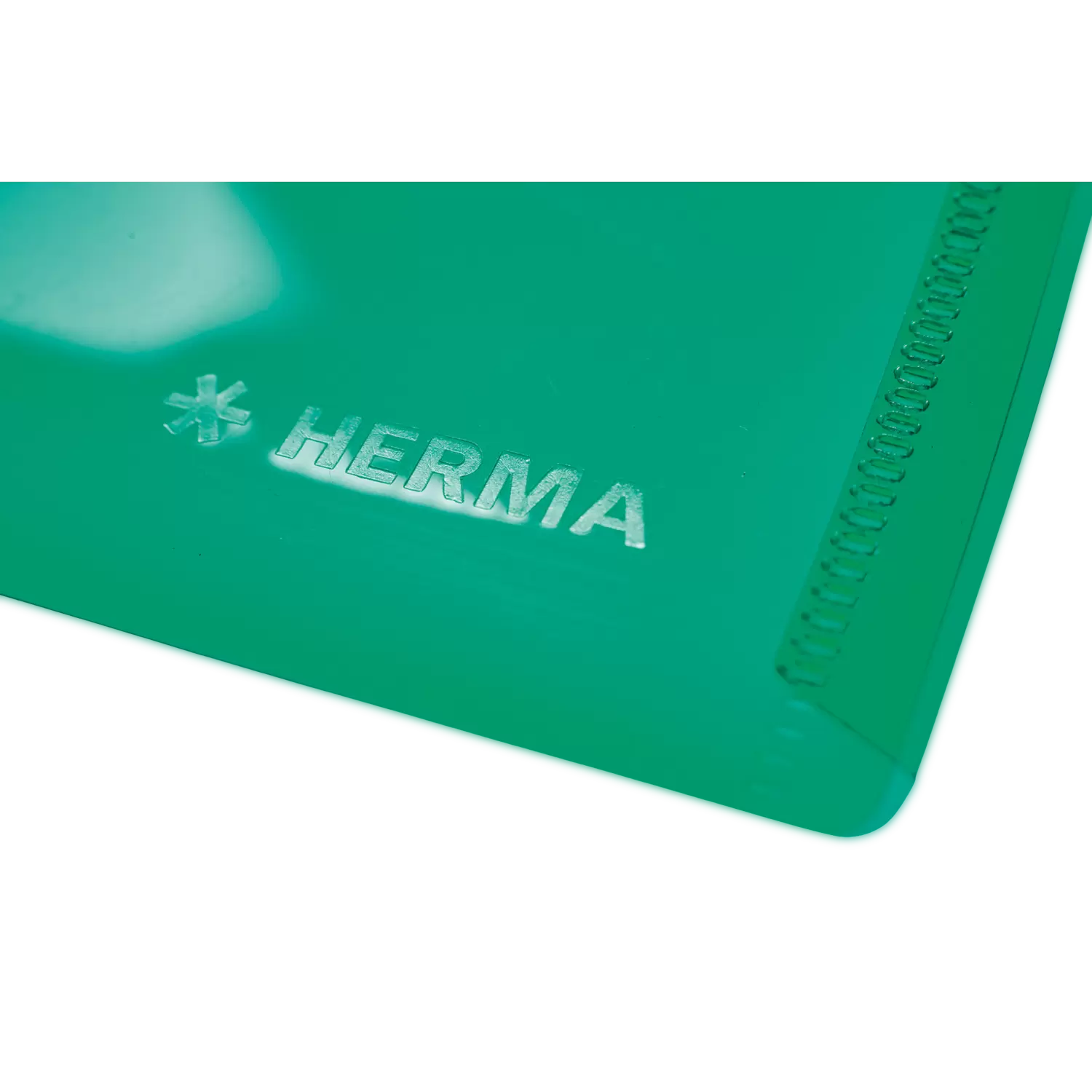 The practical HERMA Document Bag in A5 format (25 x 18 cm) in dark green is the multifunctional organiser for on the go, at home, at work, at school and much more. The handy folder is made of sturdy transparent polypropylene and is therefore resistant to dirt and moisture. Receipts, letters, travel documents, drawings or smaller utensils stay neat and tidy.