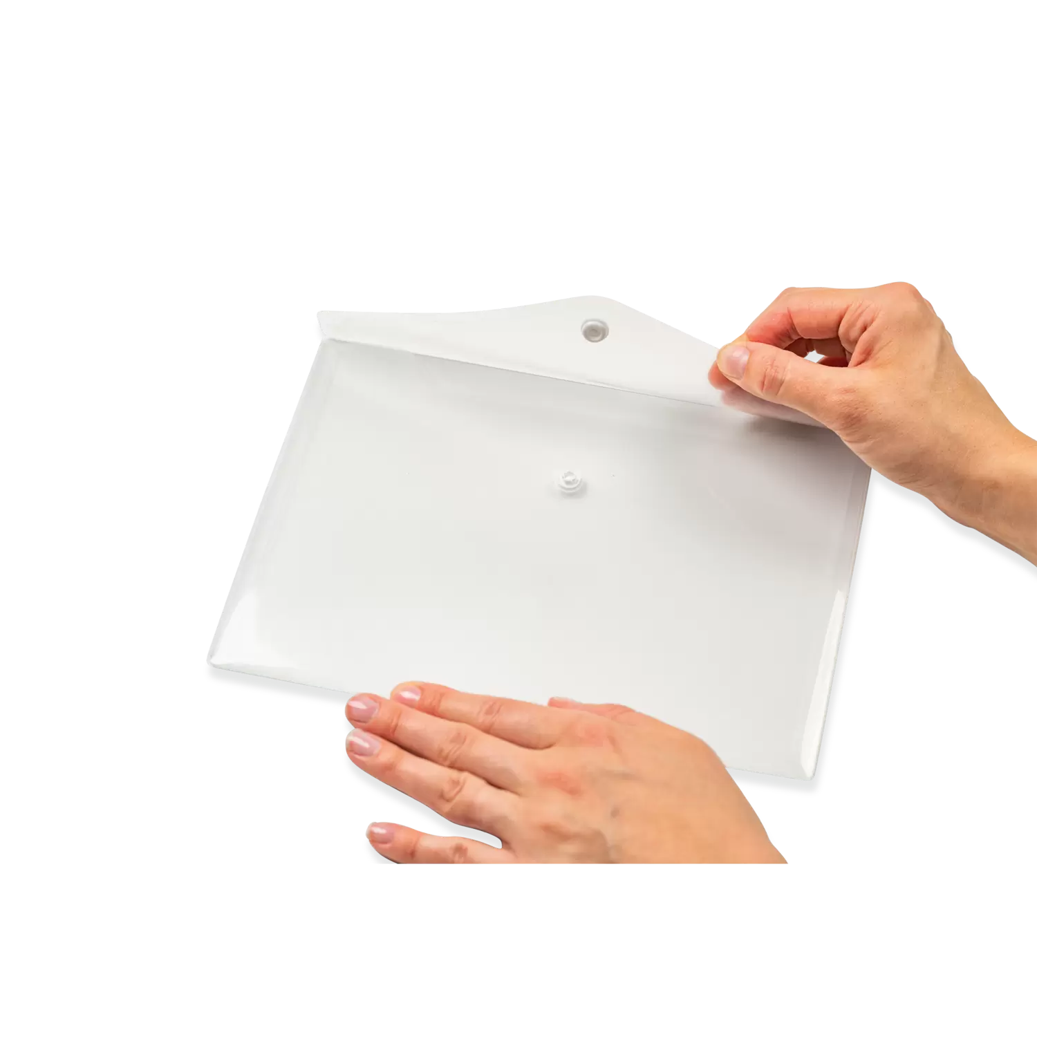 The practical HERMA Document Bag in A5 format (25 x 18 cm) in whiite is the multifunctional organiser for on the go, at home, at work, at school and much more. The handy folder is made of sturdy transparent polypropylene and is therefore resistant to dirt and moisture. Receipts, letters, travel documents, drawings or smaller utensils stay neat and tidy.