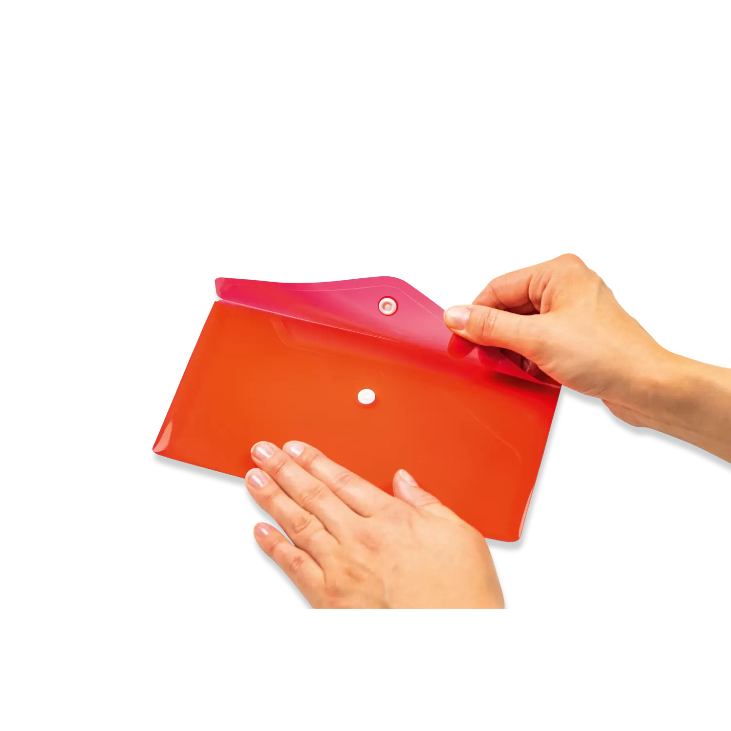 The practical HERMA Document Bag in DIN long format (22 x 12 cm) in red is the multifunctional organiser for on the go, at home, at work, at school and much more. The handy folder is made of sturdy transparent polypropylene and is therefore resistant to dirt and moisture. Receipts, letters, travel documents, drawings or smaller utensils stay neat and tidy.