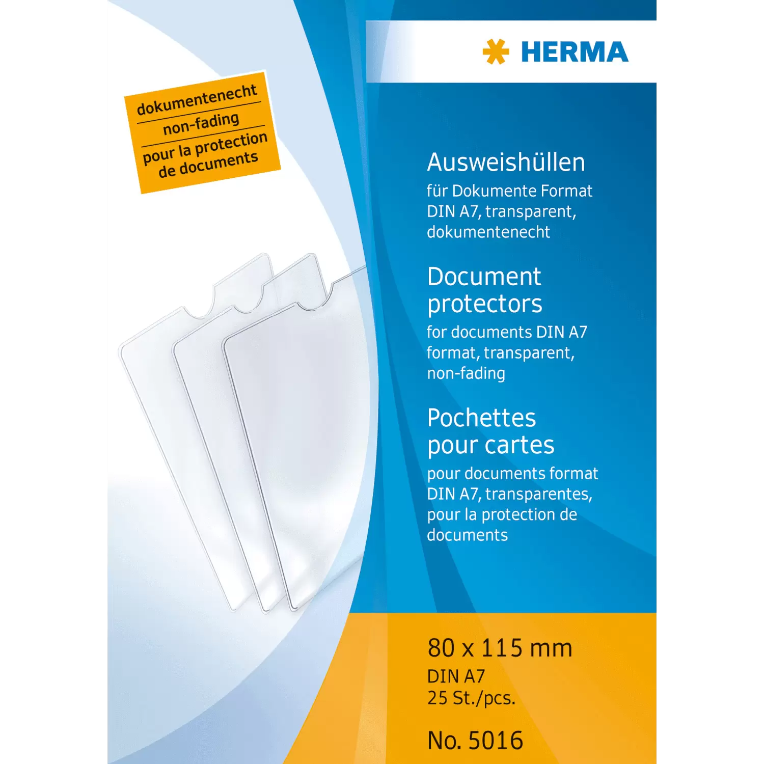 Documents, ID cards as well as bank, credit and other important cards should be well protected and safely stored. The HERMA insert sleeve made of transparent polypropylene film is ideal for documents and more in the format 80 x 115 mm. The document cover is extremely hard-wearing and sturdy, document-proof, tear-resistant, odor-free and protects against moisture, dirt and wear, even when on the move in your wallet, purse or pocket. That is HERMA quality Made in Germany.