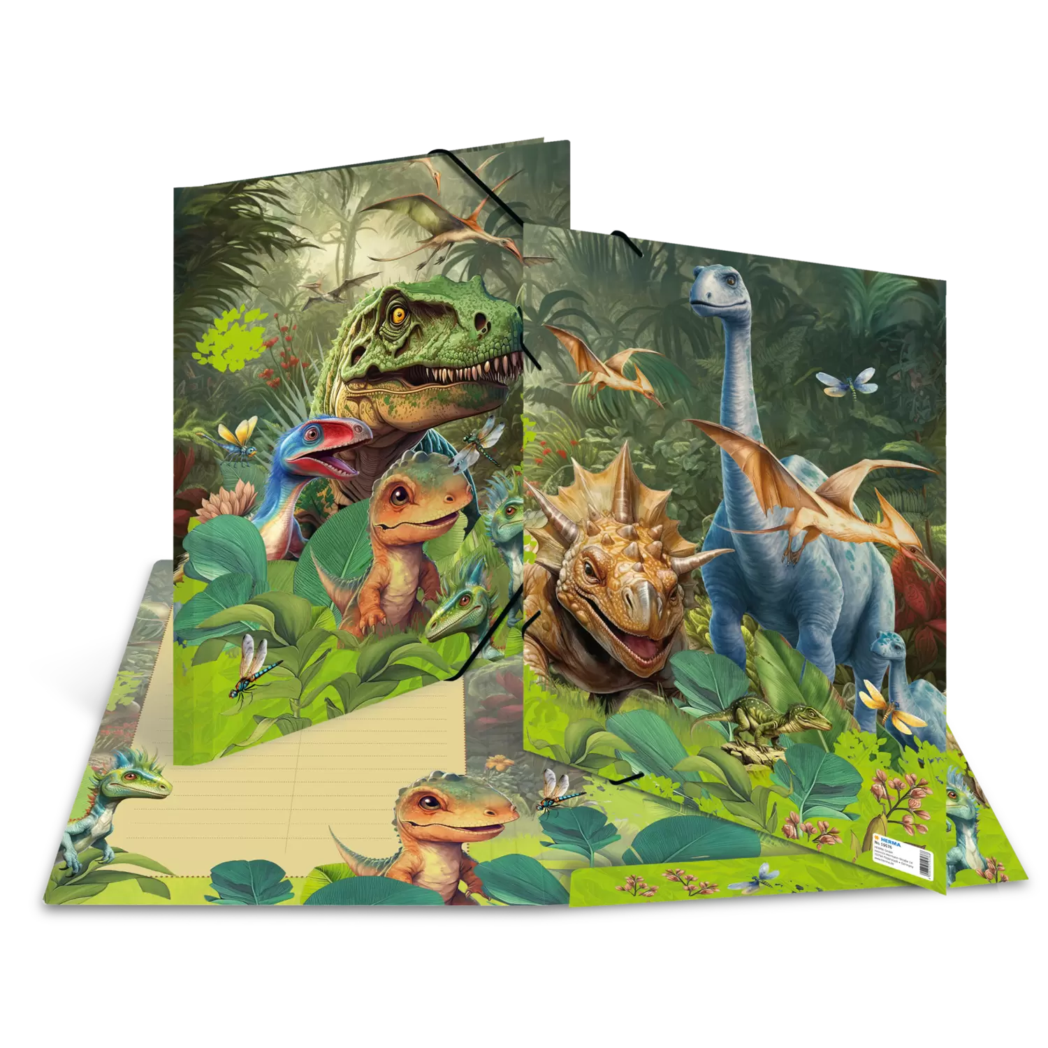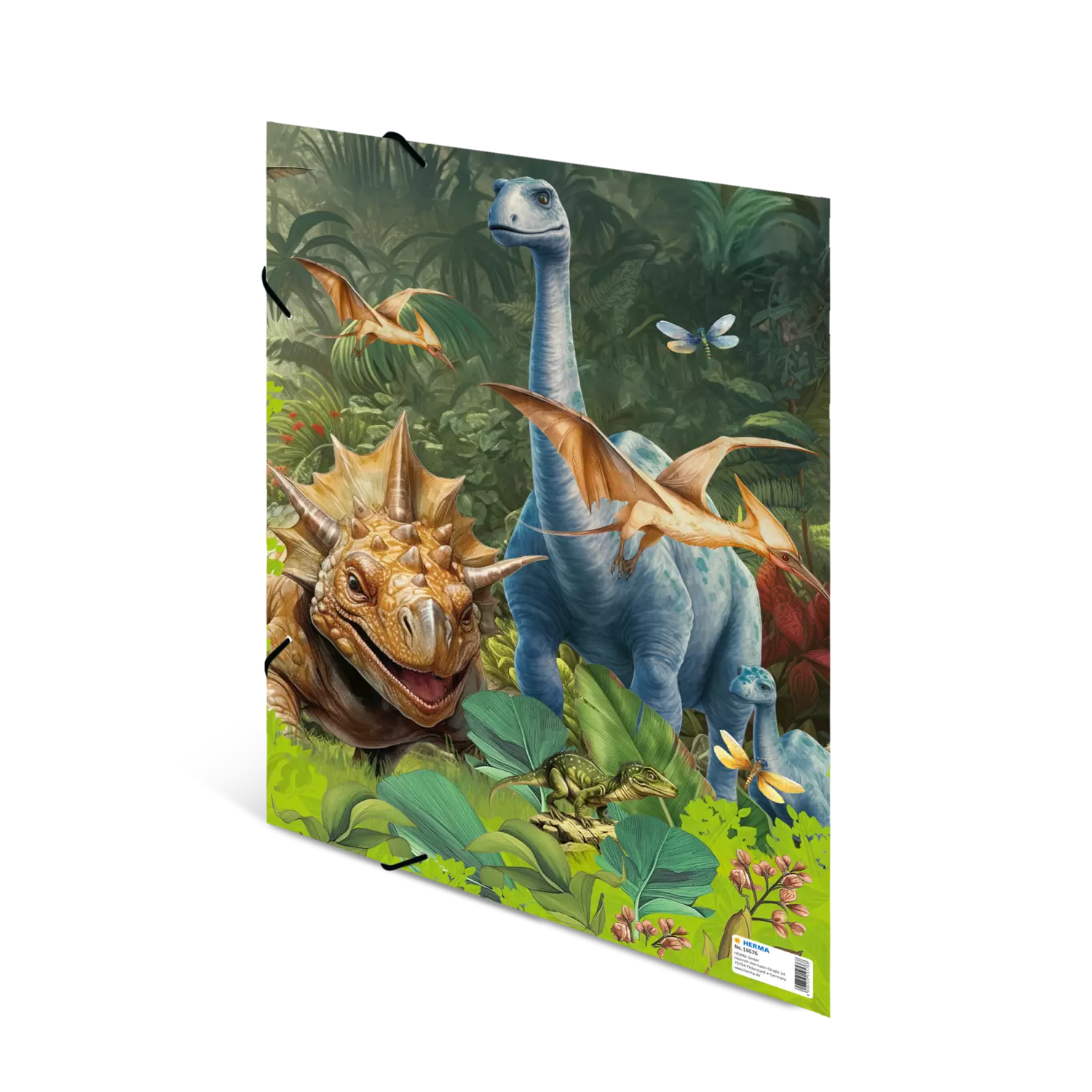 In the world of prehistoric giants there is a new attraction: Elasticated folders with cool dinosaur motif! With great care for detail and a realistic representation that makes the heart of every dinosaur fan beat faster, this folder is a real highlight. Each dinosaur has been carefully drawn in great detail to capture the fascination and magic of these long-extinct creatures. Practical and durable - that's quality from HERMA. The folder measures 44 cm x 33,5 cm and is therefore large enough for papers, drawings and documents up to A3 size. It is made of sturdy cardboard and can be easily opened and closed with two high-quality corner straps. Three interior flaps protect the contents and even smaller documents cannot fall out. The dinos are loose - ROOOOARRRRR!