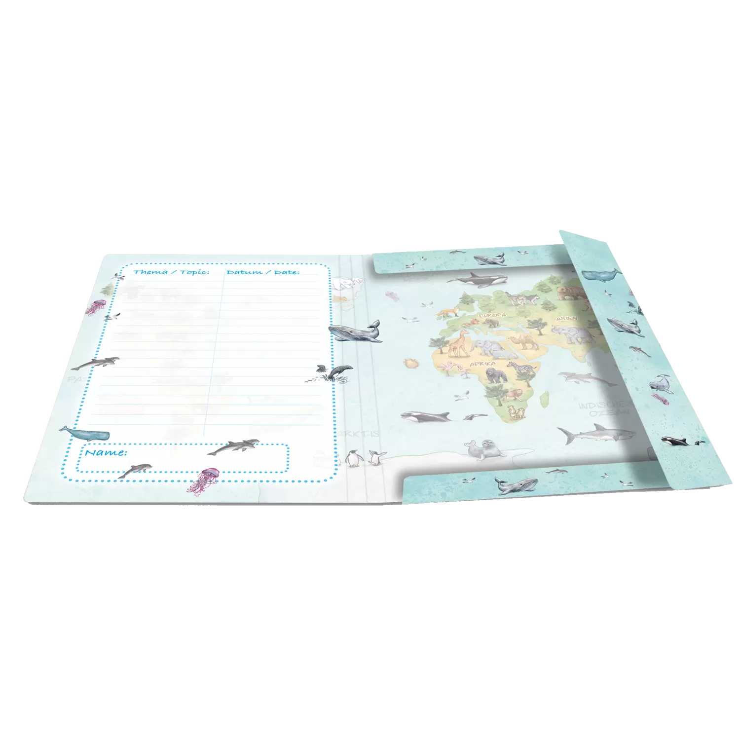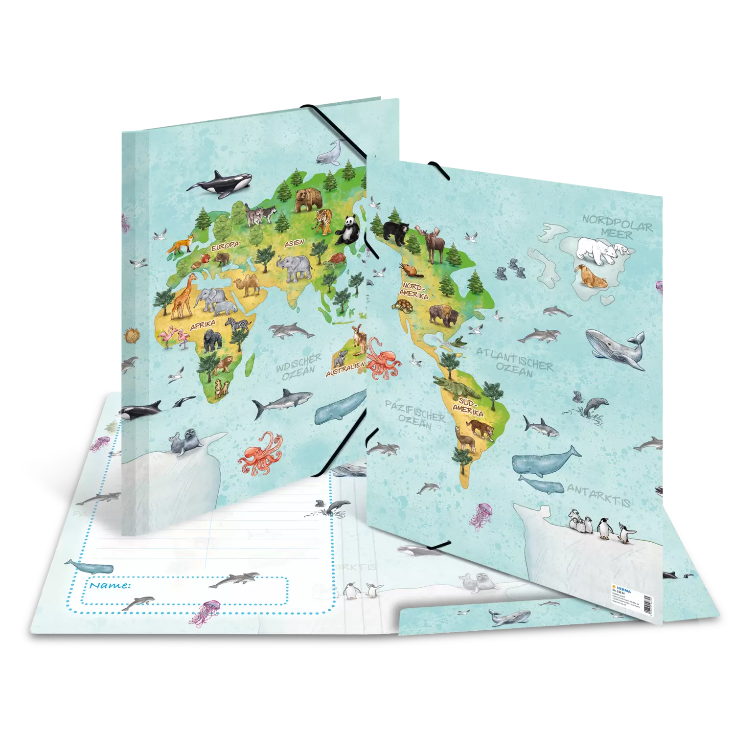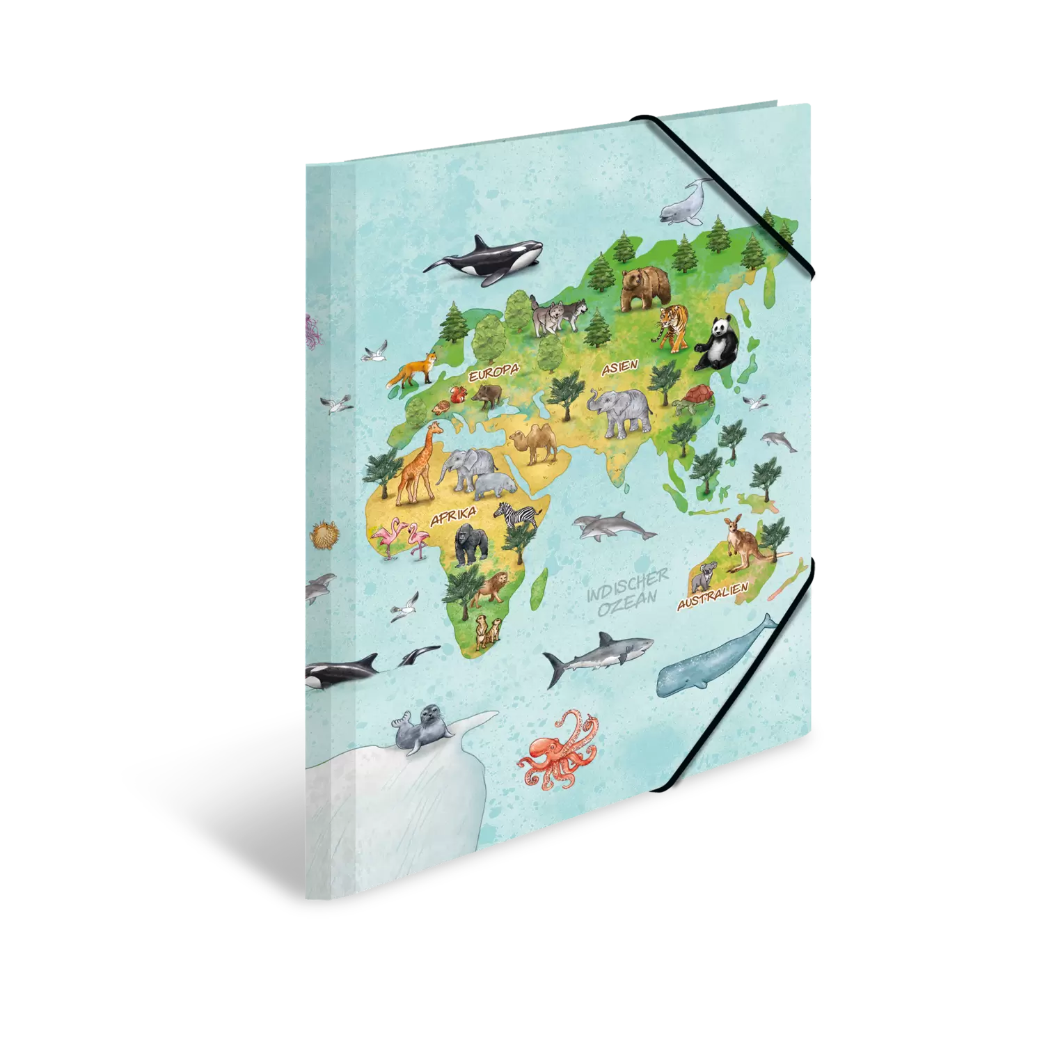 Once around the world, please! Discover the continents in a fun way and find out which animals live where, all in a cool design. With the folder "World Map" by HERMA geography is twice as fun! The folder measures 44 cm x 33,5 cm and is therefore large enough for papers, drawings and documents up to A3 size. It is made of sturdy cardboard and can be easily opened and closed with two high-quality corner straps. Three interior flaps protect the contents and even smaller documents cannot fall out.