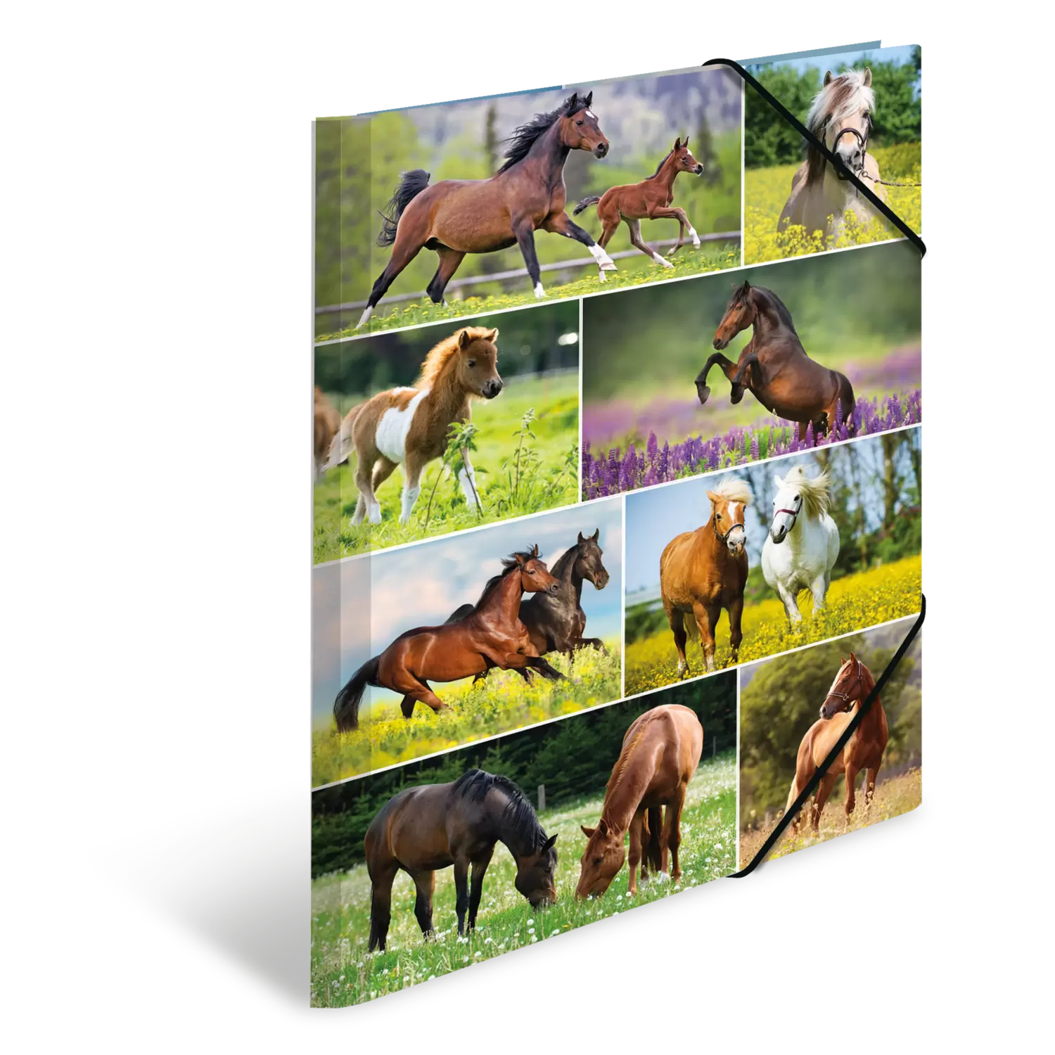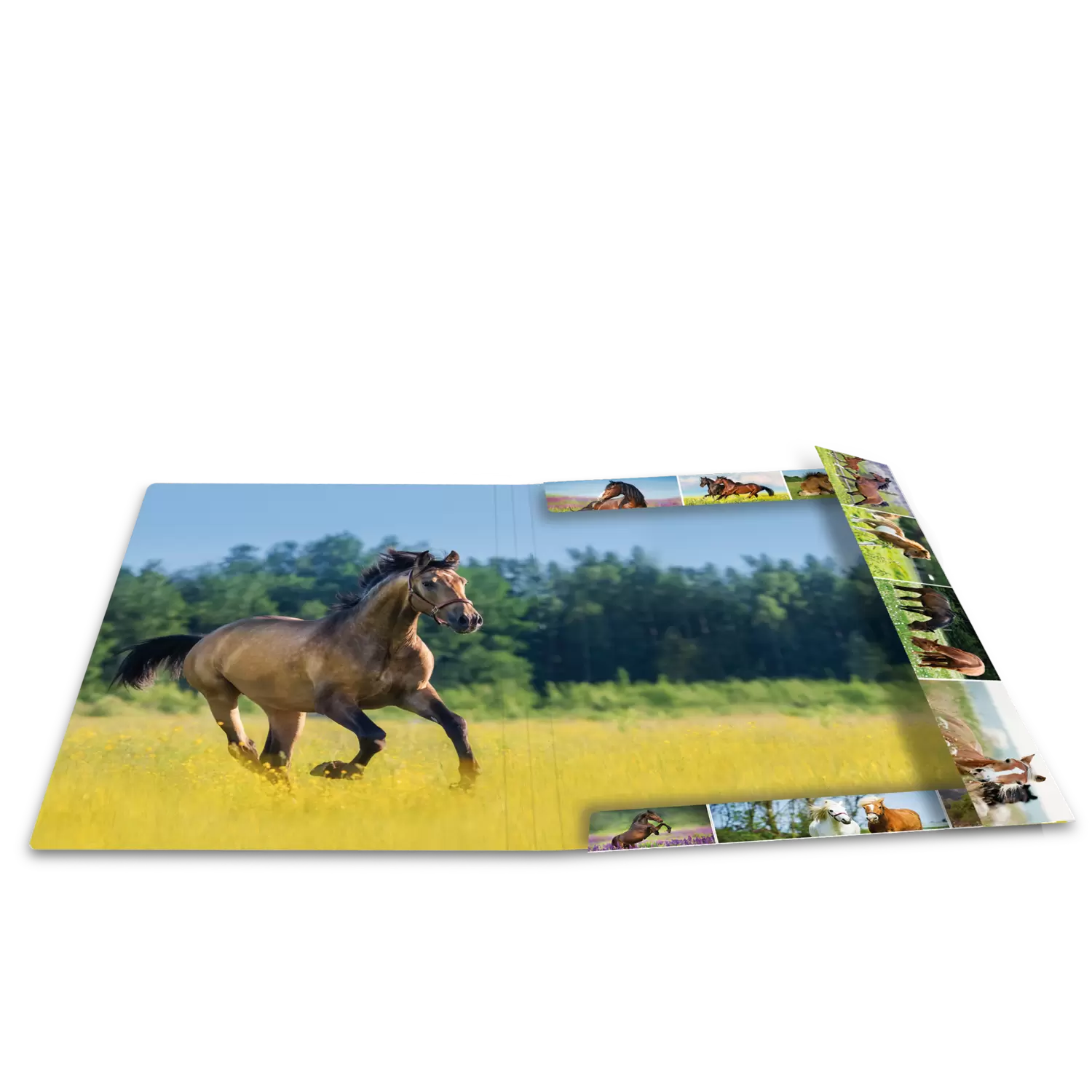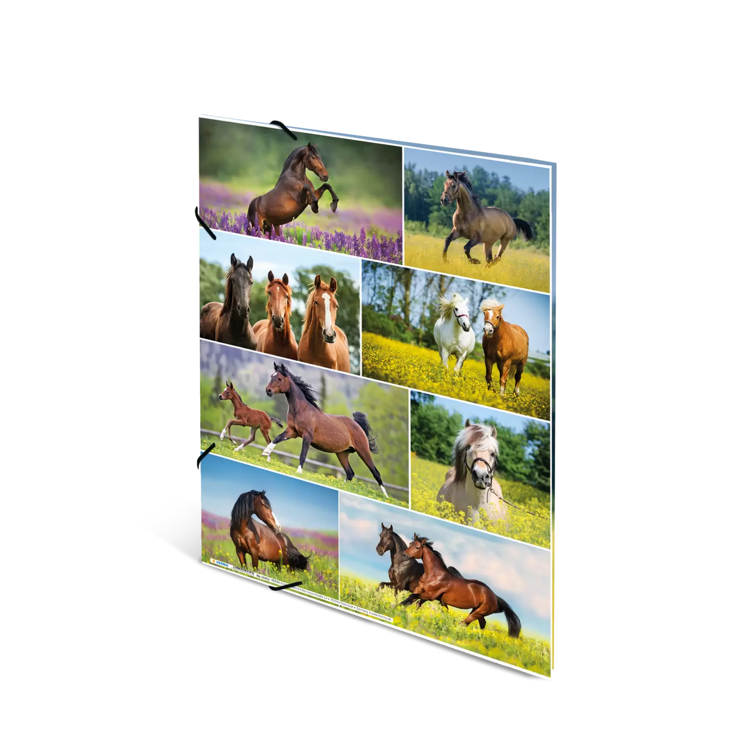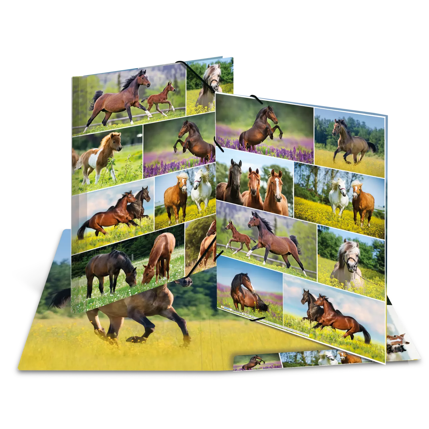 - Suitable for formats up to DIN A3, made of sturdy cardboard, with elastic corner straps and 3 printed interior flaps