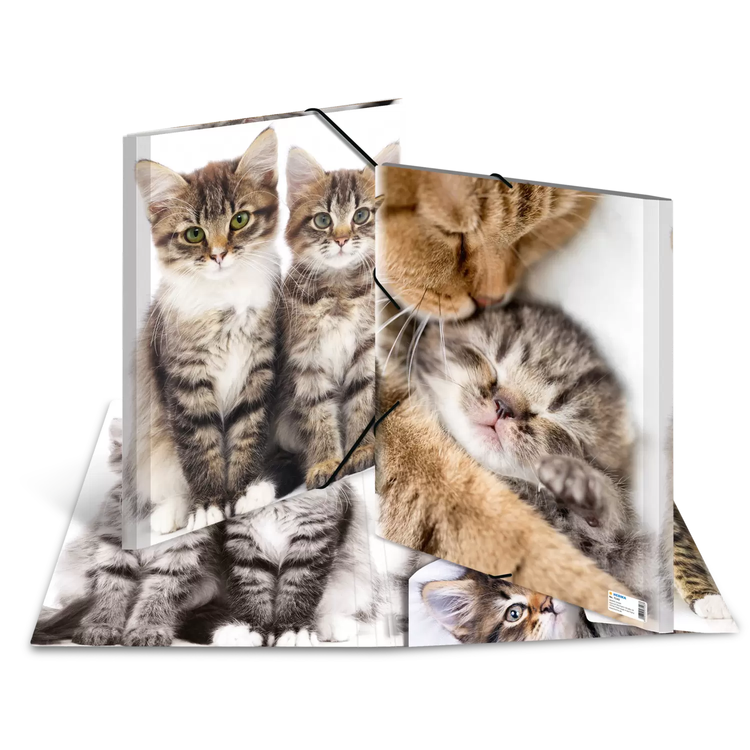 Elasticated folder with elastic straß and 3 printed flaps. Made of sturdy polypropylene, size A3. Ideal for storing loose papers. Available in design cats.