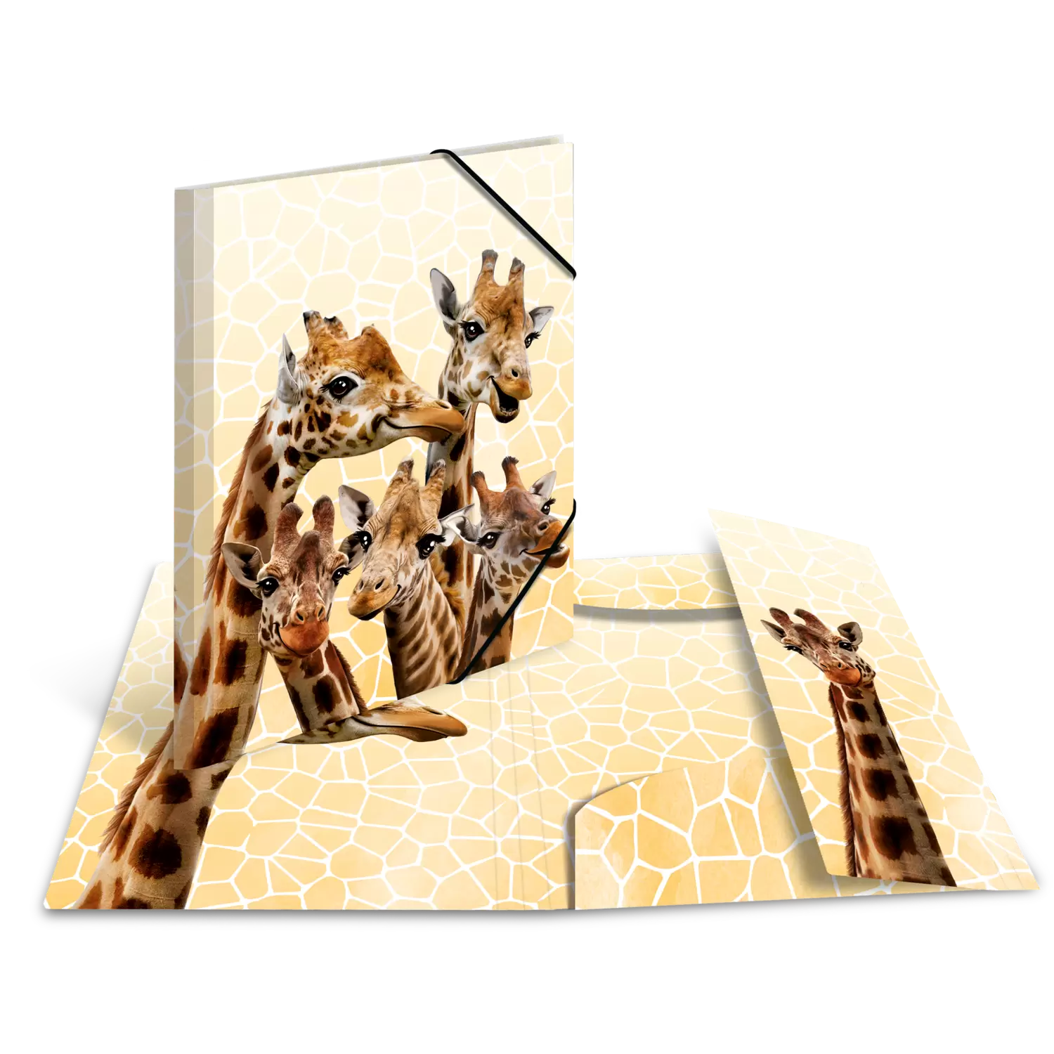 • Elasticated folder, design series Exotic Animals, motif bright Giraffes with beautiful eyes and long lashes