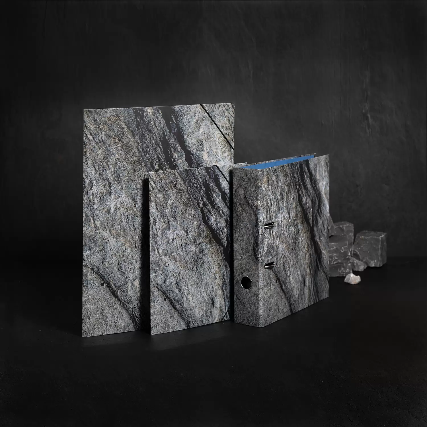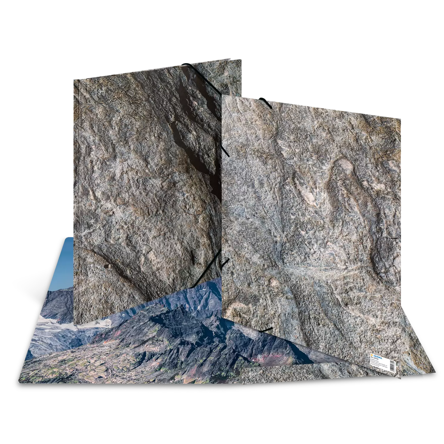 Nature is a master artist. Her overwhelming power and delicate beauty are on permanent display in cavernous gorges, towering mountains, endless rolling oceans and trees that touch the sky. HERMA's "Nature" deluxe elasticated folder series demonstrates this artistic balance of nature. They are adorned with rugged testaments to time that bear the brushstrokes of the ages. They are rough yet fragile, wild and unpredictable, and full of fine forms. They are an everlasting work of art, a fleeting moment, a glimpse into the age of eternal ice. The "Stone" elasticated folder displays the rough and rugged nature of rock and stone. There is an interplay of solid structures and gentle washed-out forms that are shaped by water and wind. They are both hard and soft because, no matter how seemingly unyielding, stone can still be conquered by the ravages of time. A highlight in the study, in the office or on the shelf. The high-quality finish makes this elegant folder a true high-end product. It is a tribute to nature – the greatest artist of all.