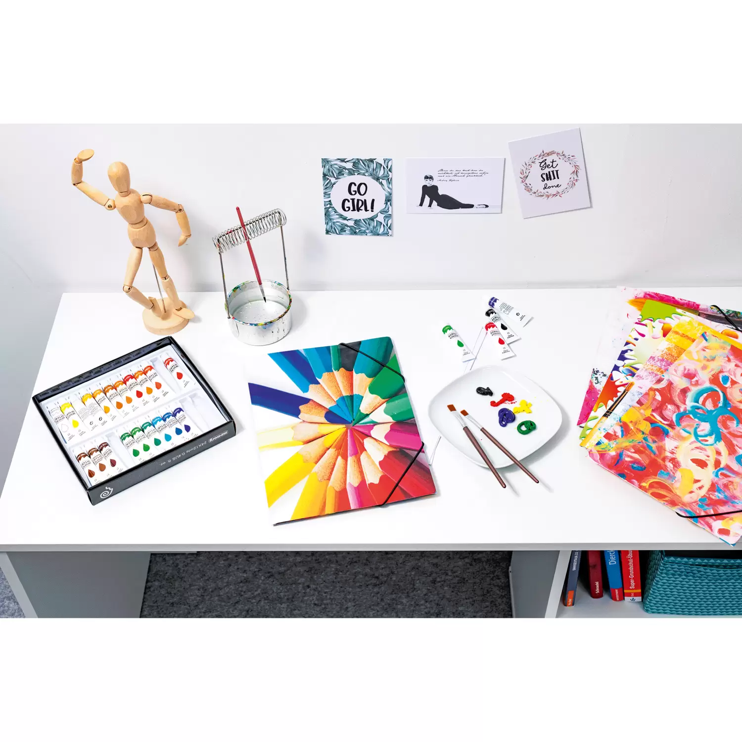 Elasticated folder A4 cardboard pencils