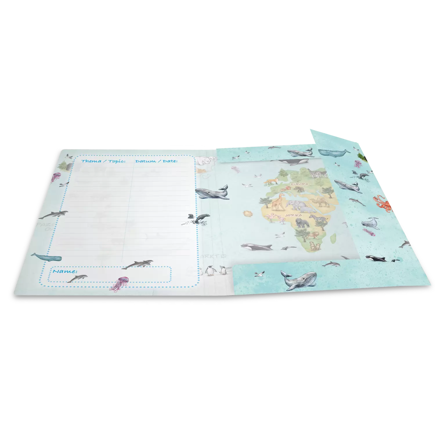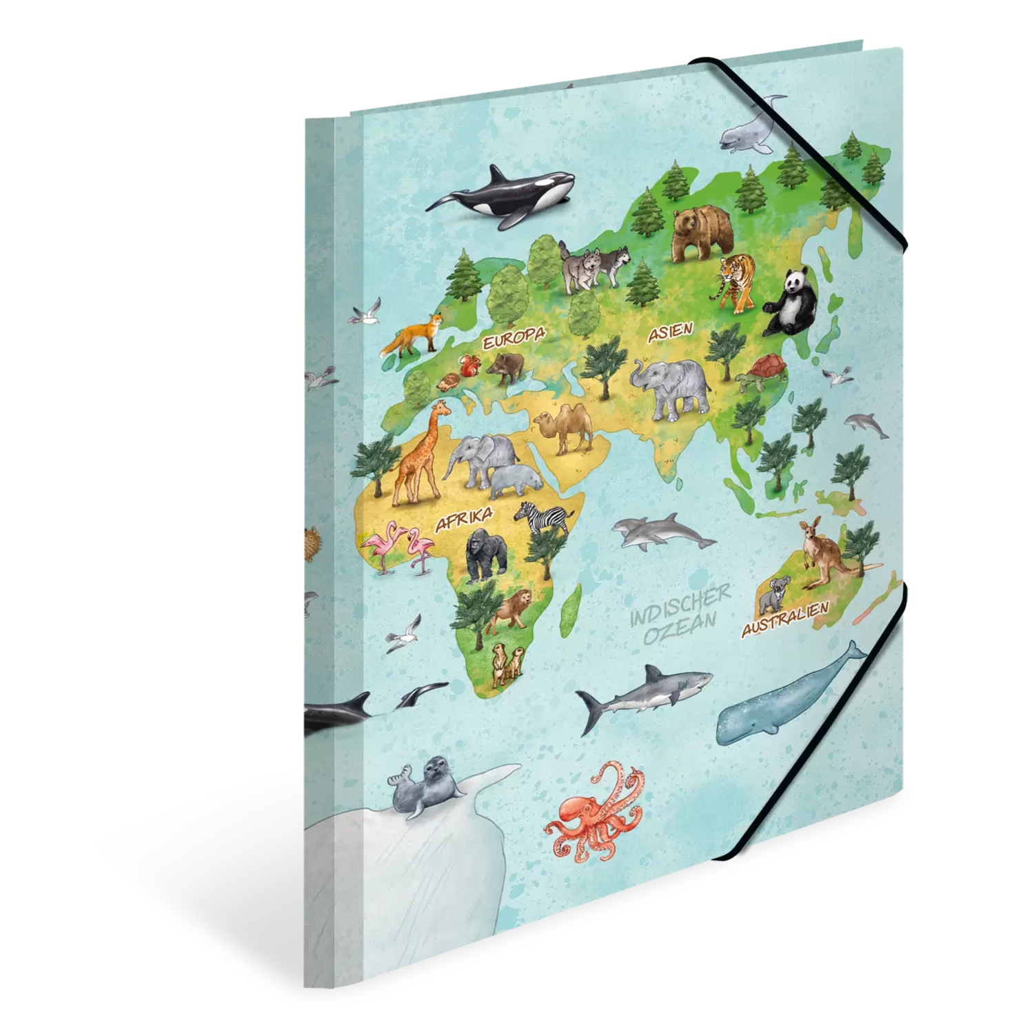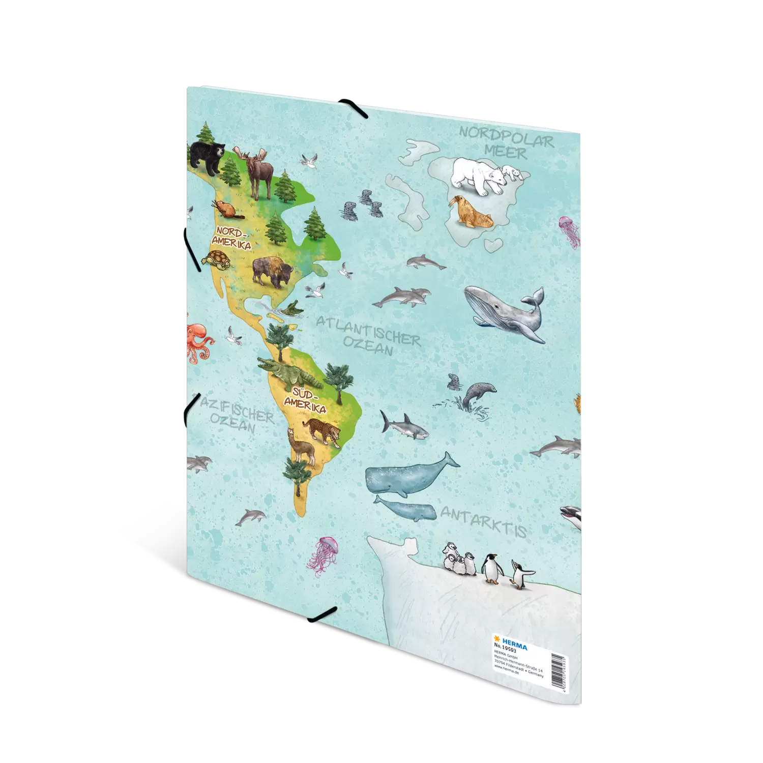 Once around the world, please! Discover the continents in a fun way and find out which animals live where, all in a cool design. With the folder "World Map" by HERMA geography is twice as fun! The folder measures 32 cm x 24 cm and is therefore large enough for papers, drawings and documents up to A4 size. It is made of sturdy cardboard and can be easily opened and closed with two high-quality corner straps. Three interior flaps protect the contents and even smaller documents cannot fall out.