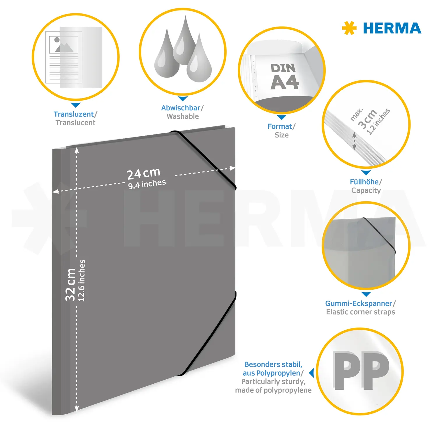 Elasticated folder with elastic band and 3 flaps. Made of sturdy polypropylene, size A4. Ideal for storing loose papers.